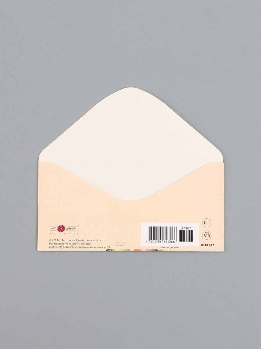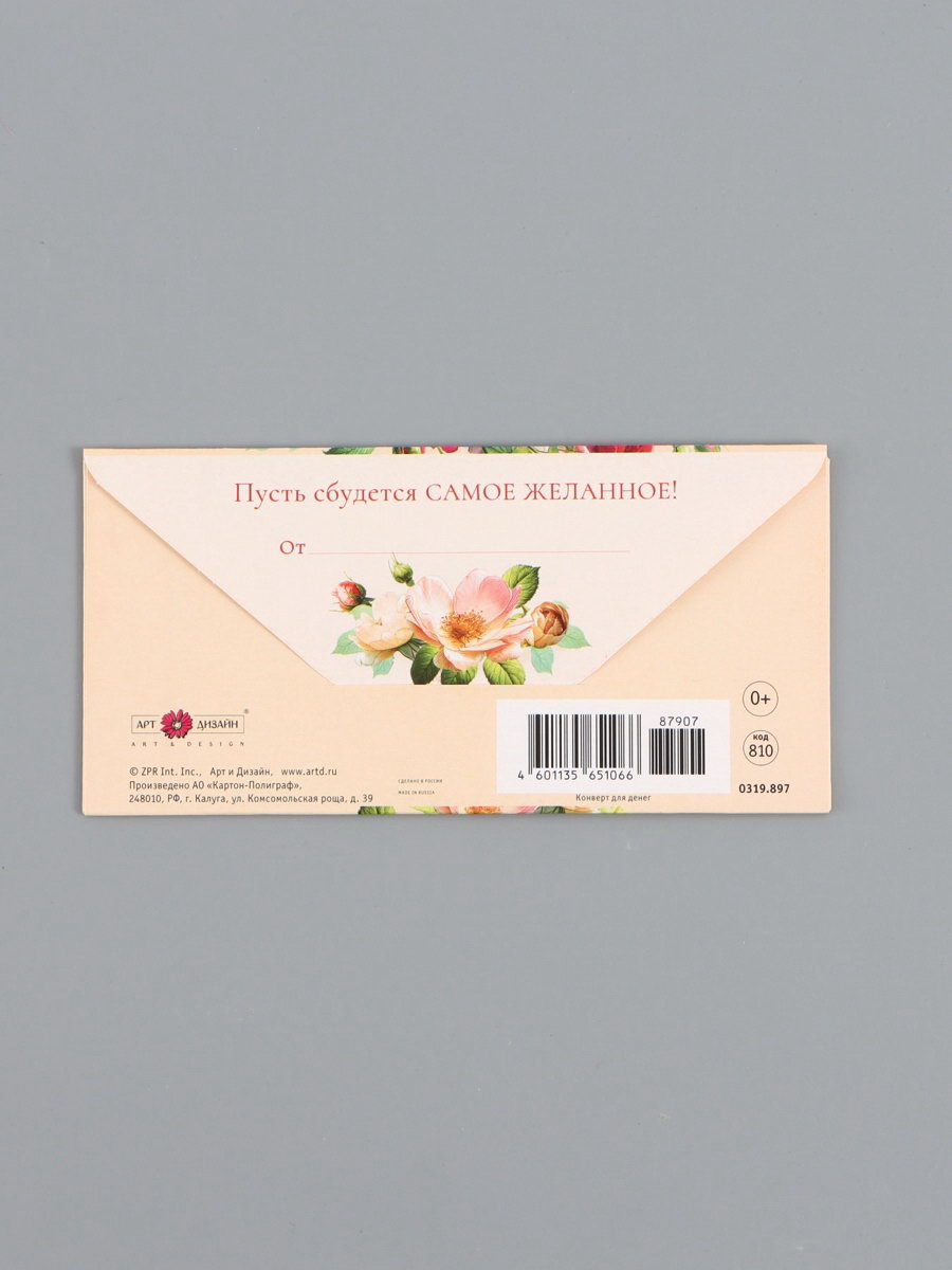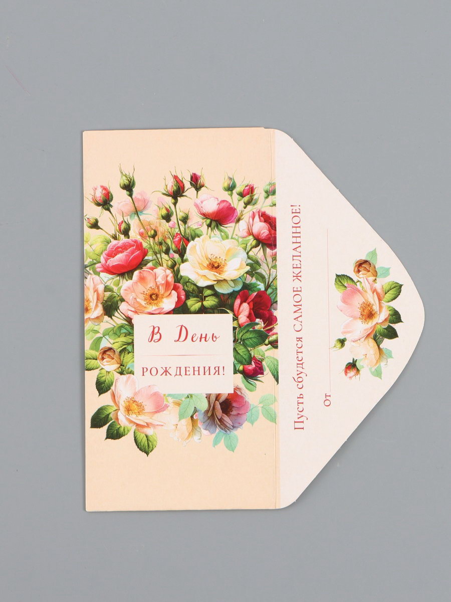 Конверт для денег "В день рождения", шиповник, 16.5 x 8 см, Россия