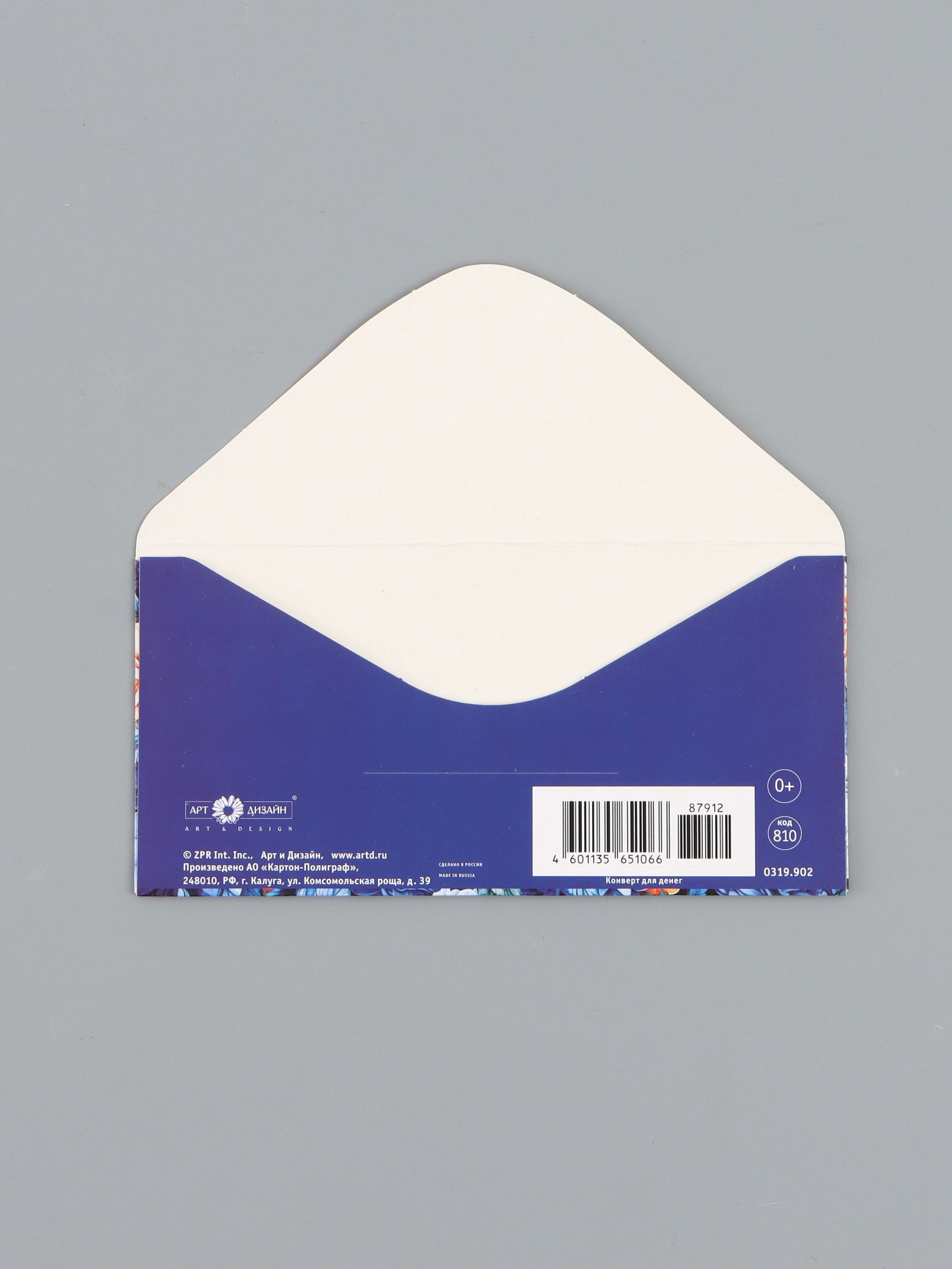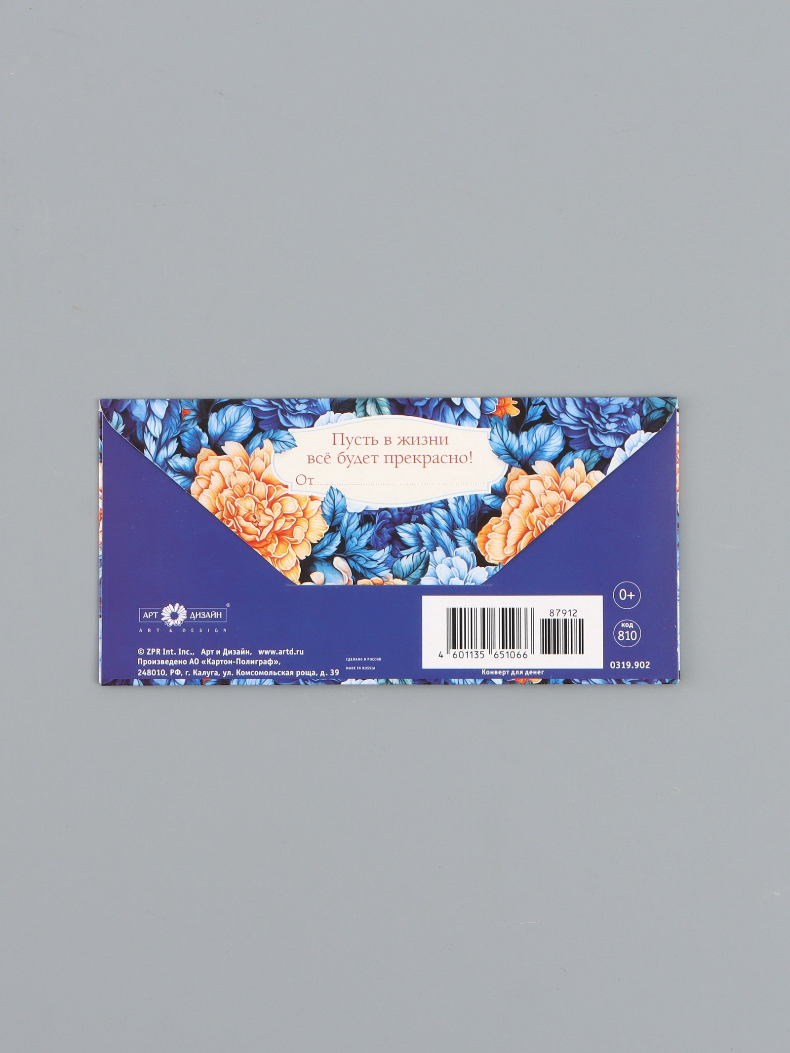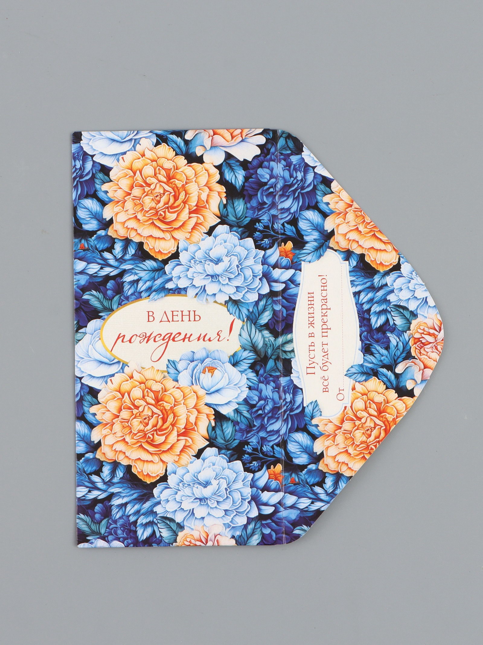 Конверт для денег "С днём рождения", синие цветы, 16.5 x 8 см, Россия