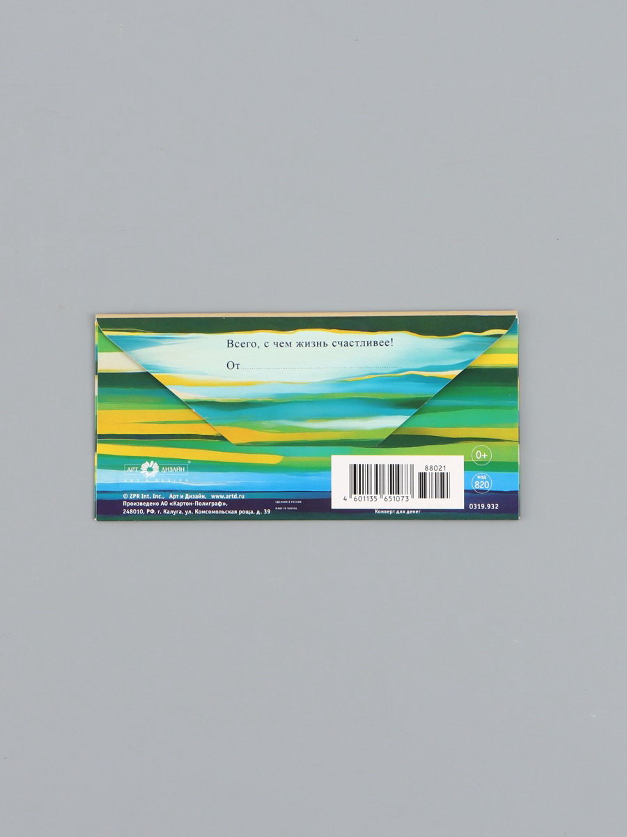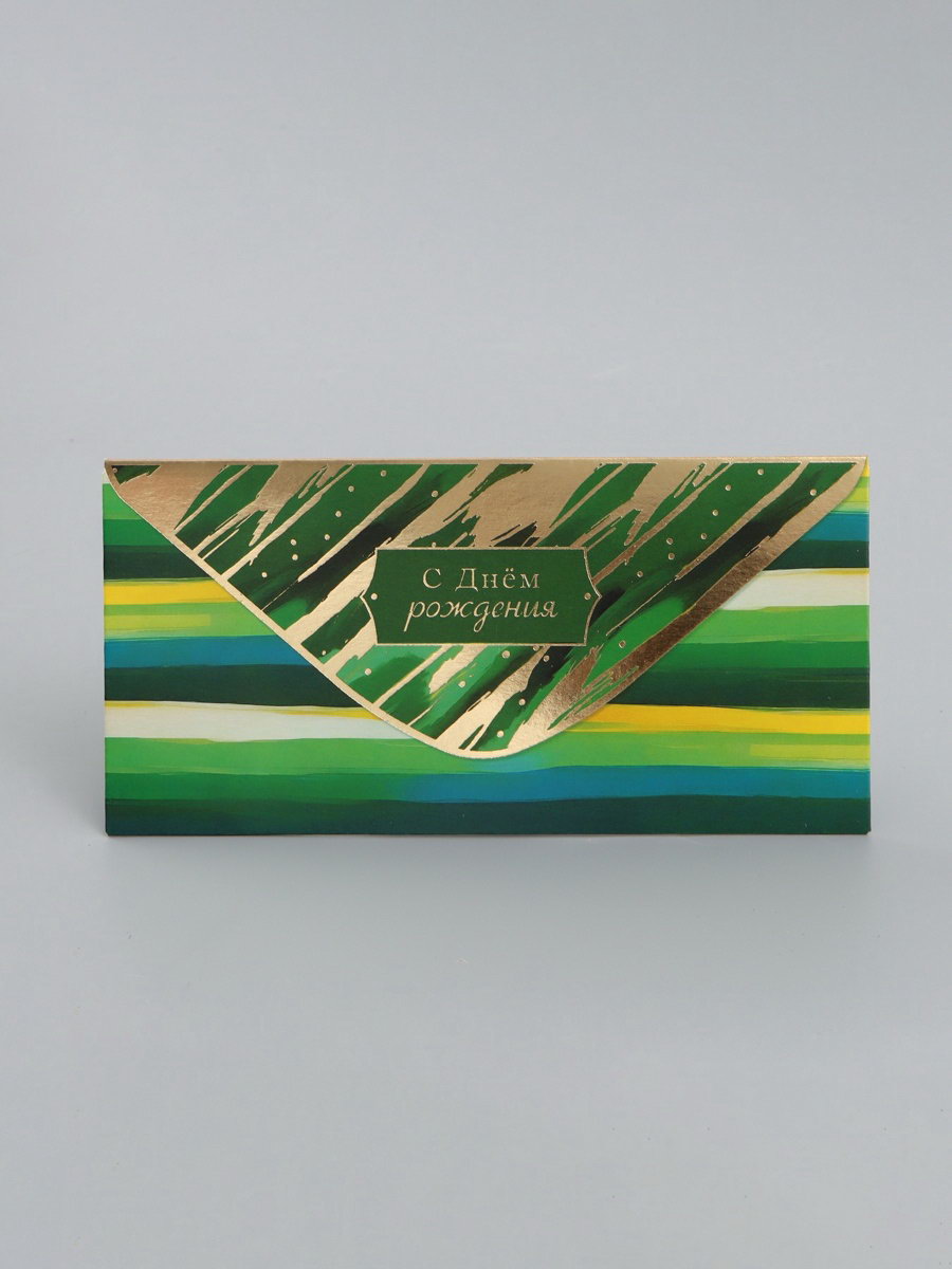 Конверт для денег "С днём рождения", зеленый, 16.5 x 8 см, Россия