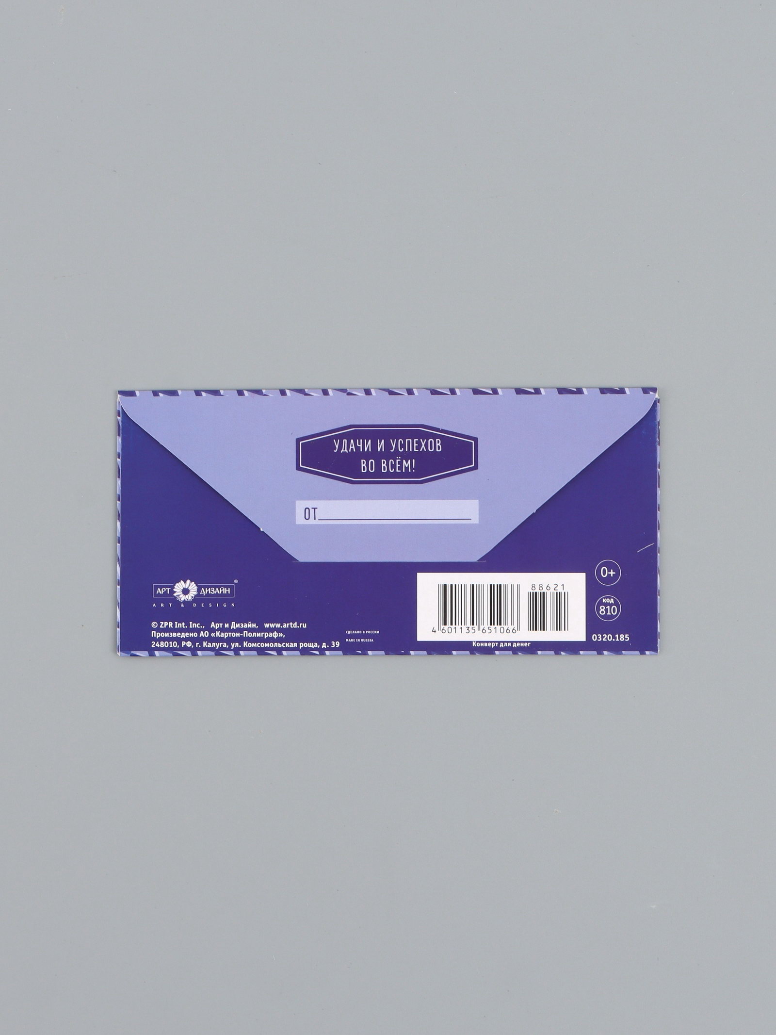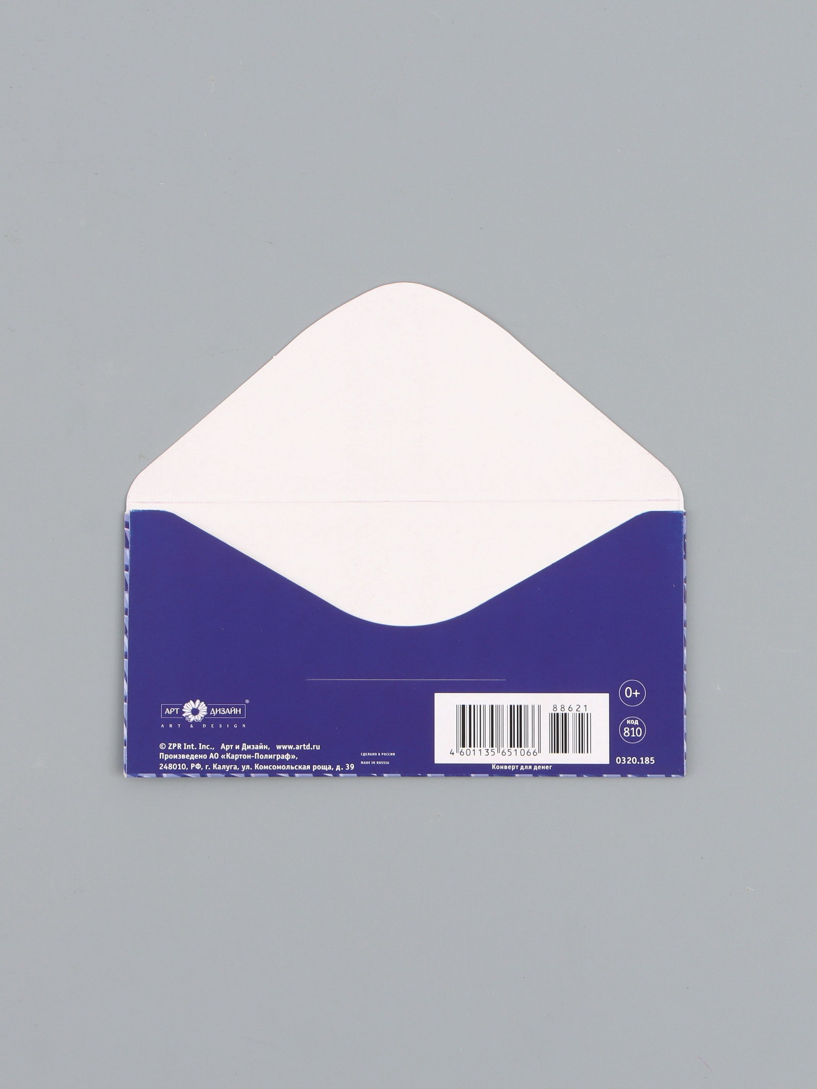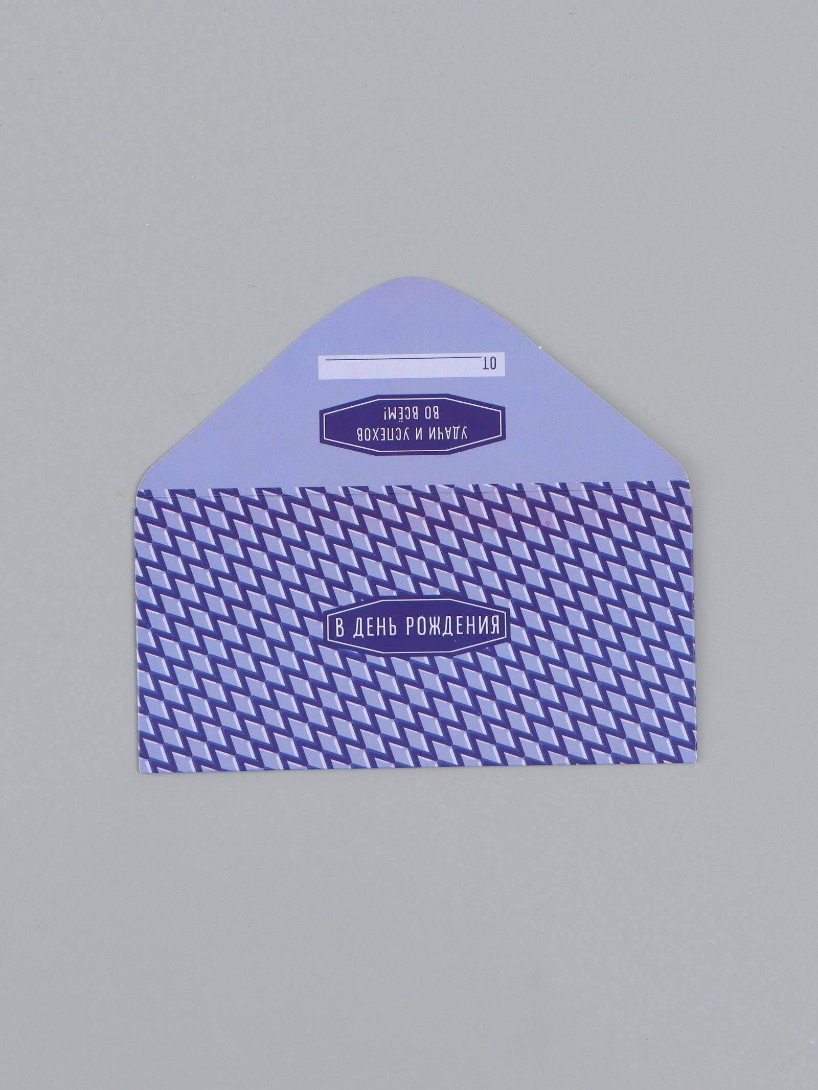 Конверт для денег "С днём рождения", орнамент синий, 16.5 x 8 см, Россия