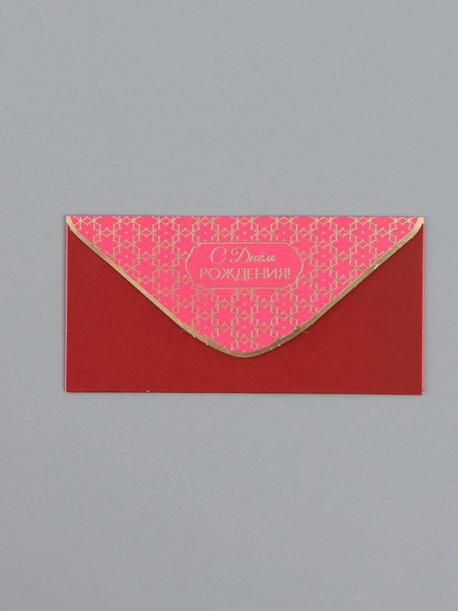 Конверт для денег "С днём рождения", красный, 16.5 x 8 см, Россия