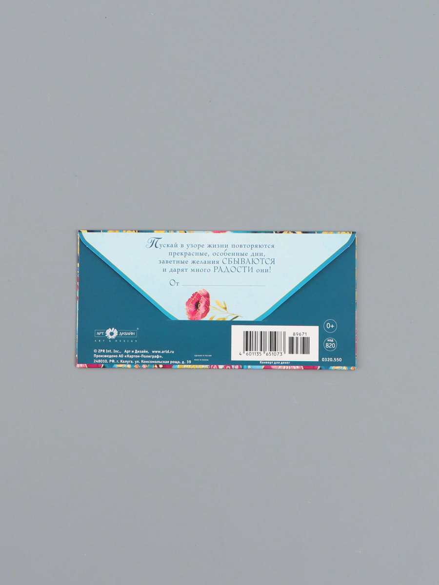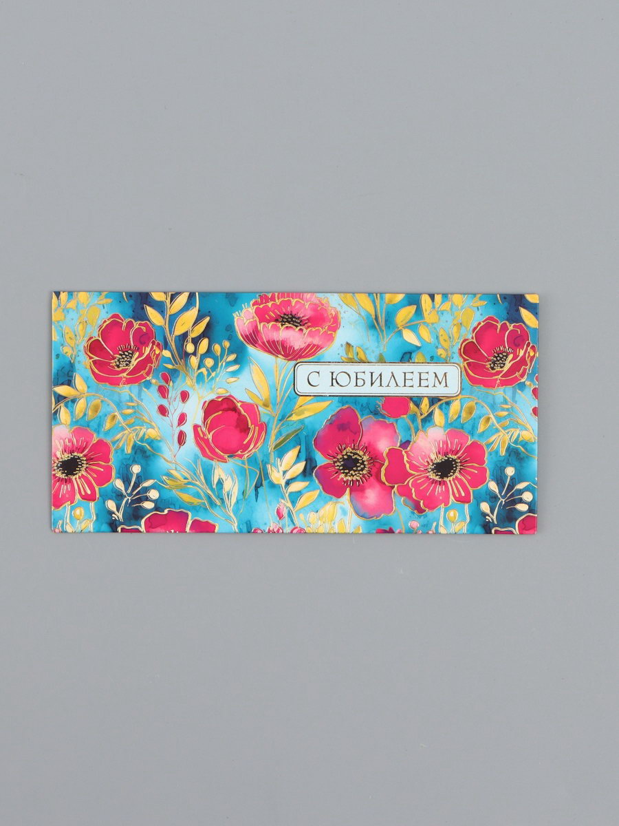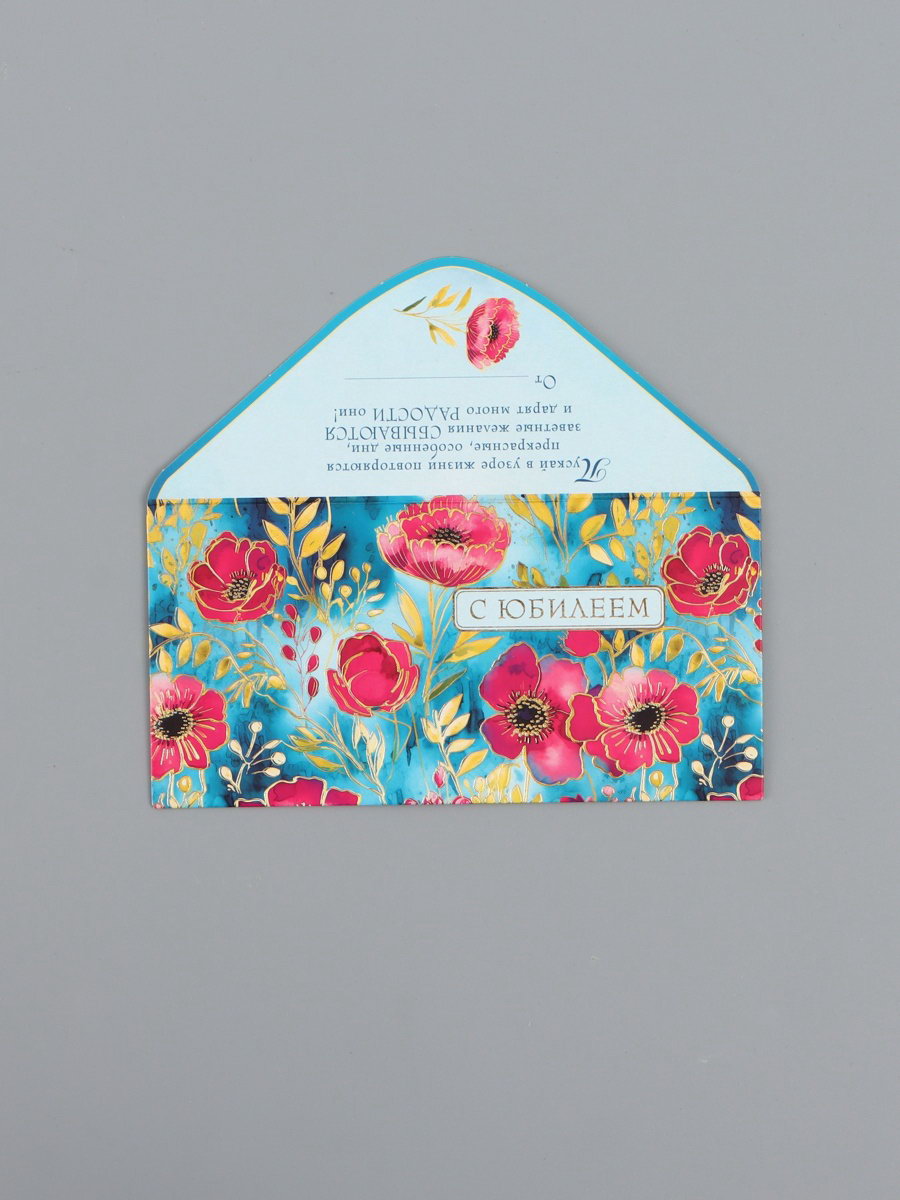 Конверт для денег "С юбилеем", розовые цветы, 16.5 x 8 см, Россия