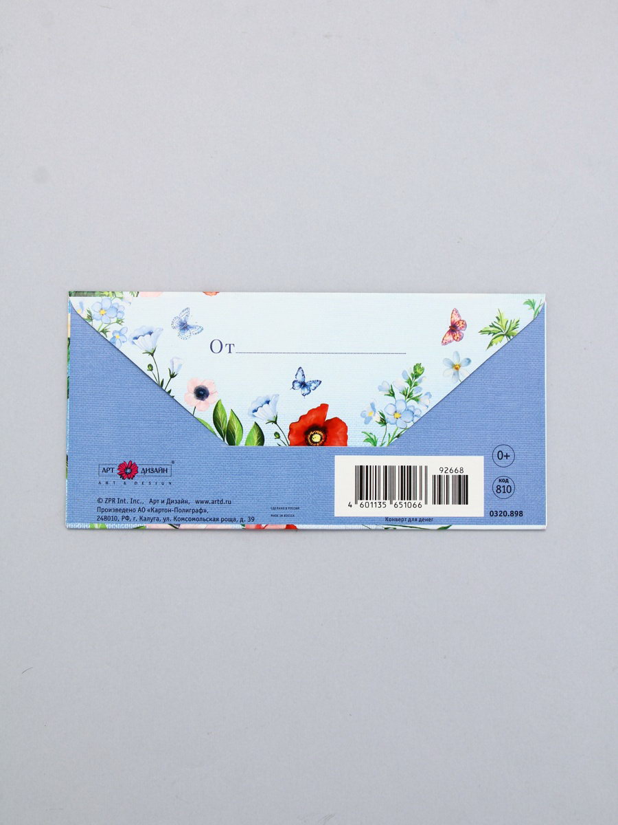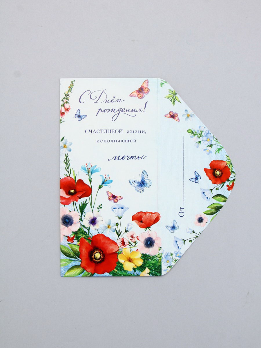 Конверт для денег "В день рождения", маки, 16.5 x 8 см, Россия