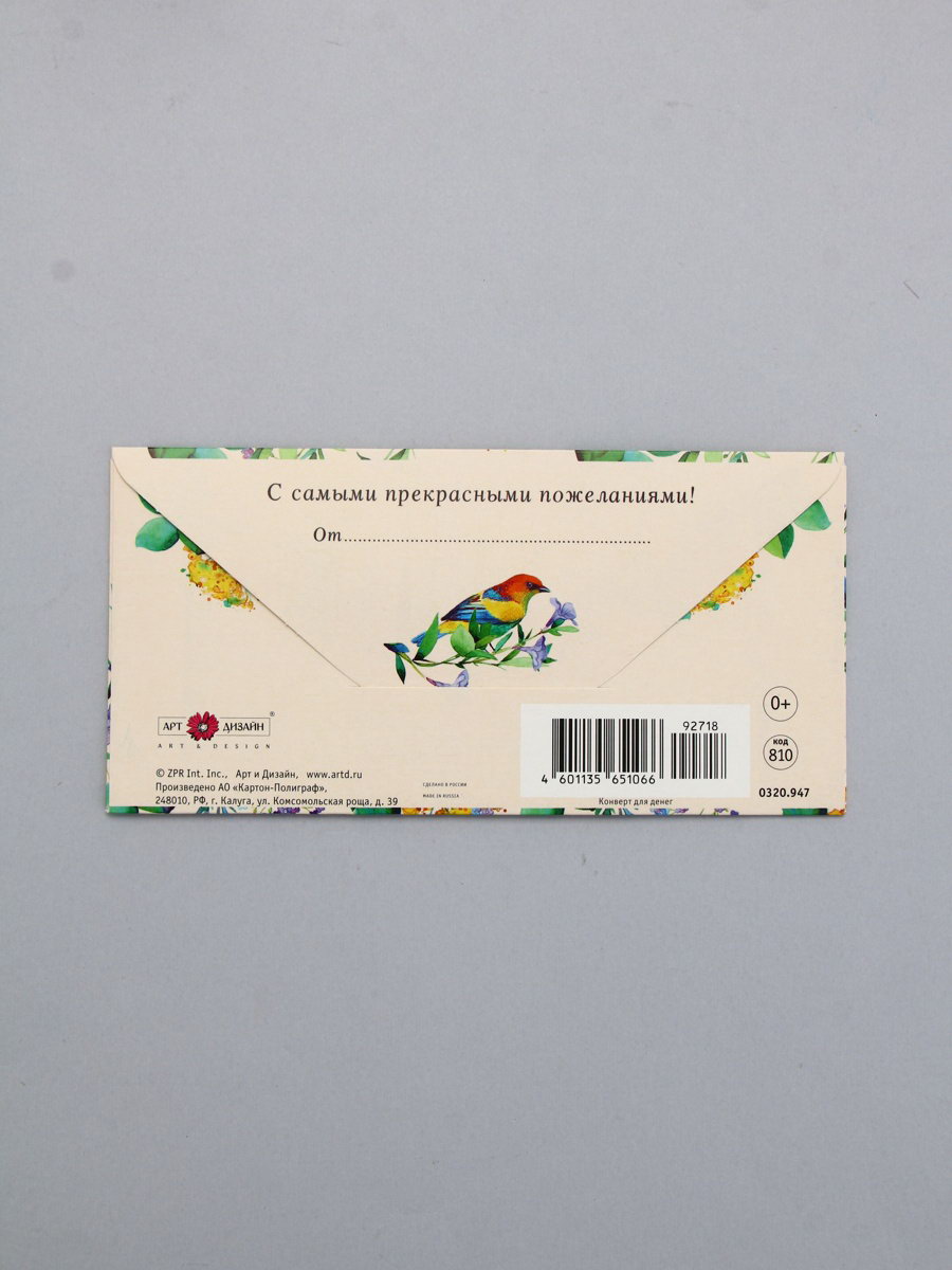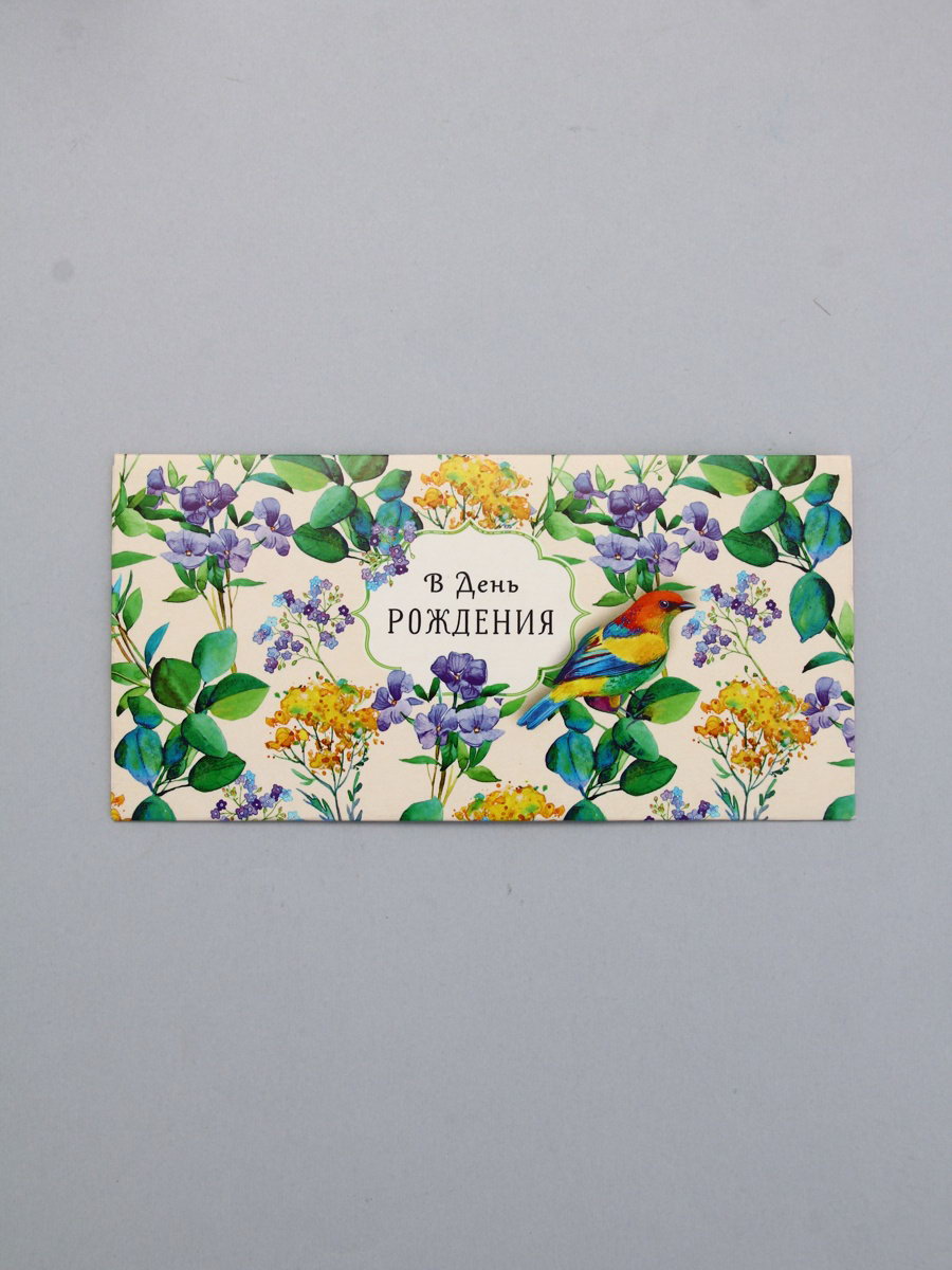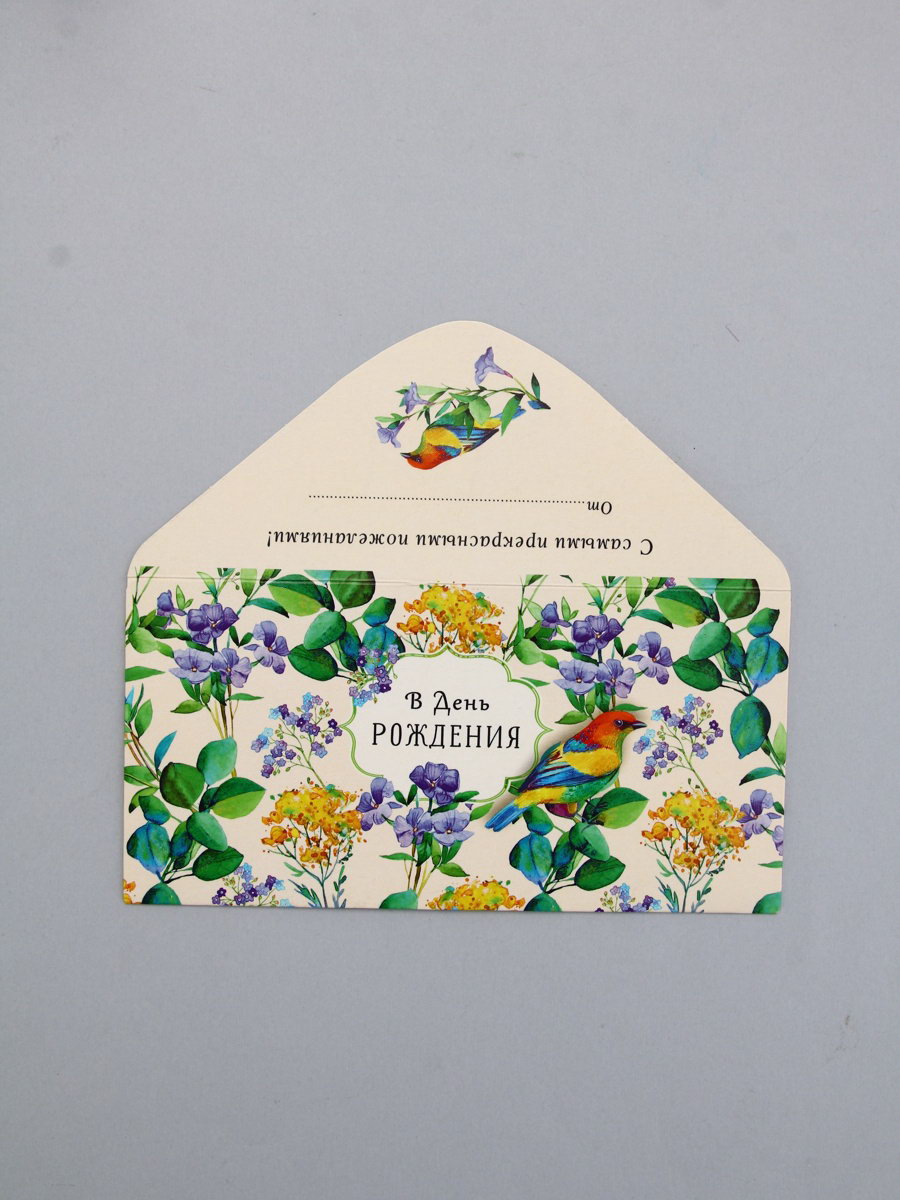 Конверт для денег "В день рождения", птица, 16.5 x 8 см, Россия