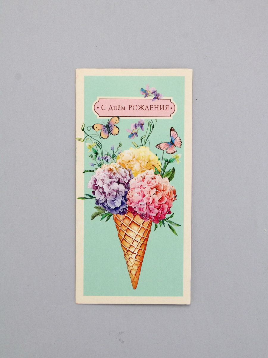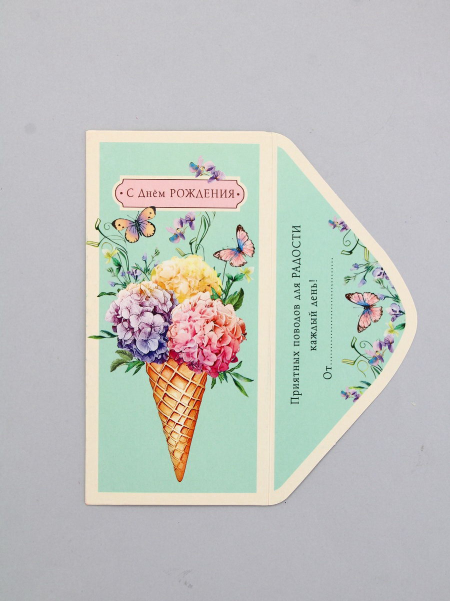 Конверт для денег "С днём рождения", рожок, 16.5 x 8 см, Россия