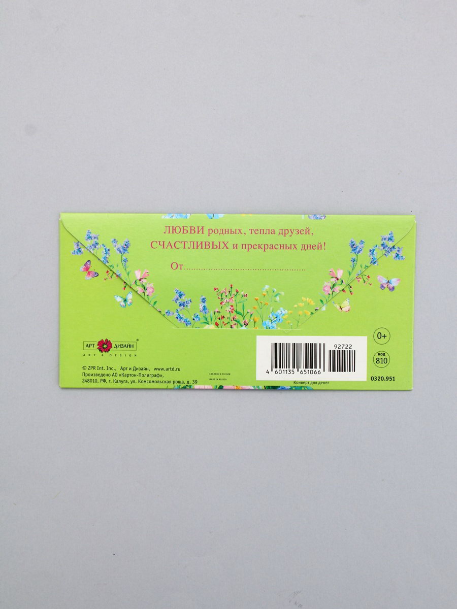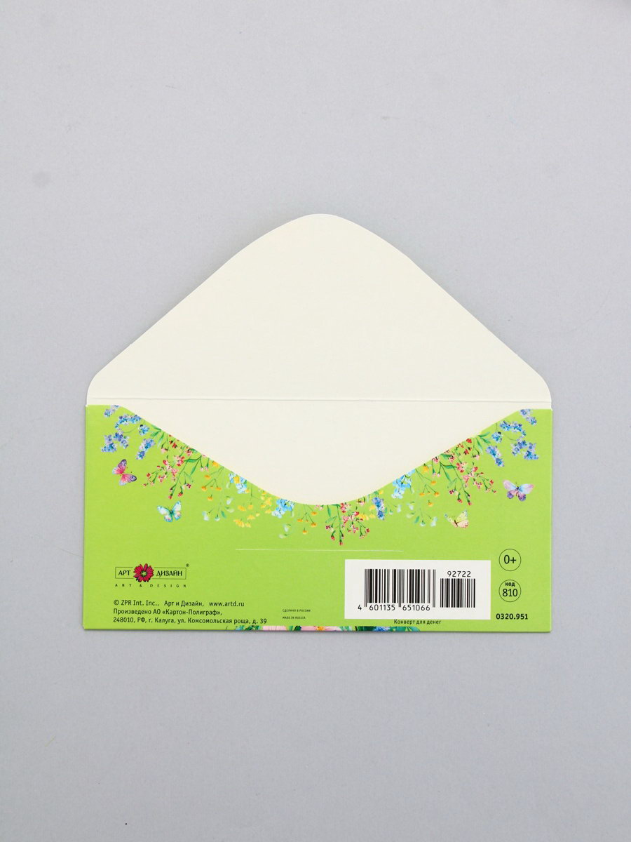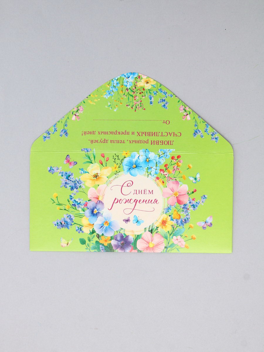 Конверт для денег "С днём рождения", 16.5x8 см, Россия