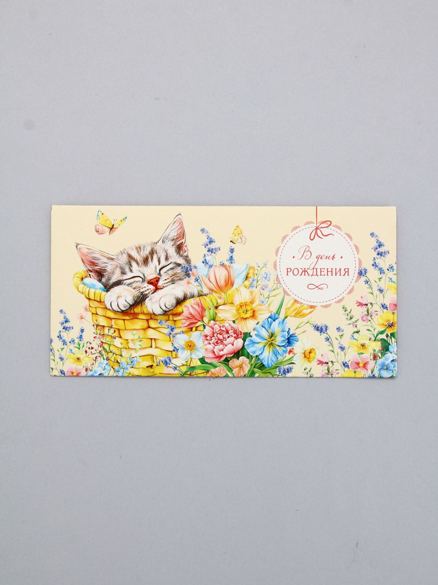 Конверт для денег "В День Рождения", котик спит, 16.5 x 8 см, Россия