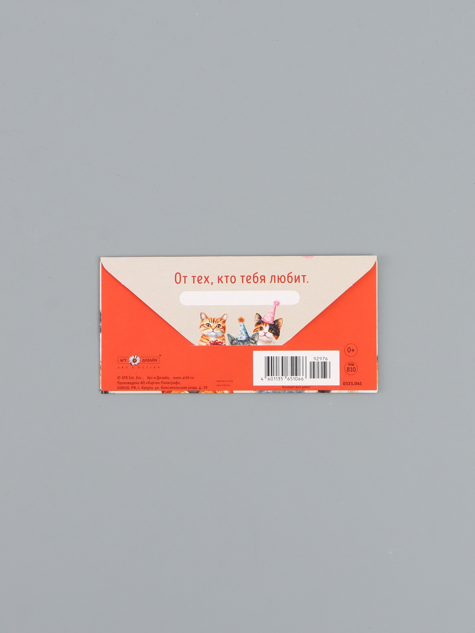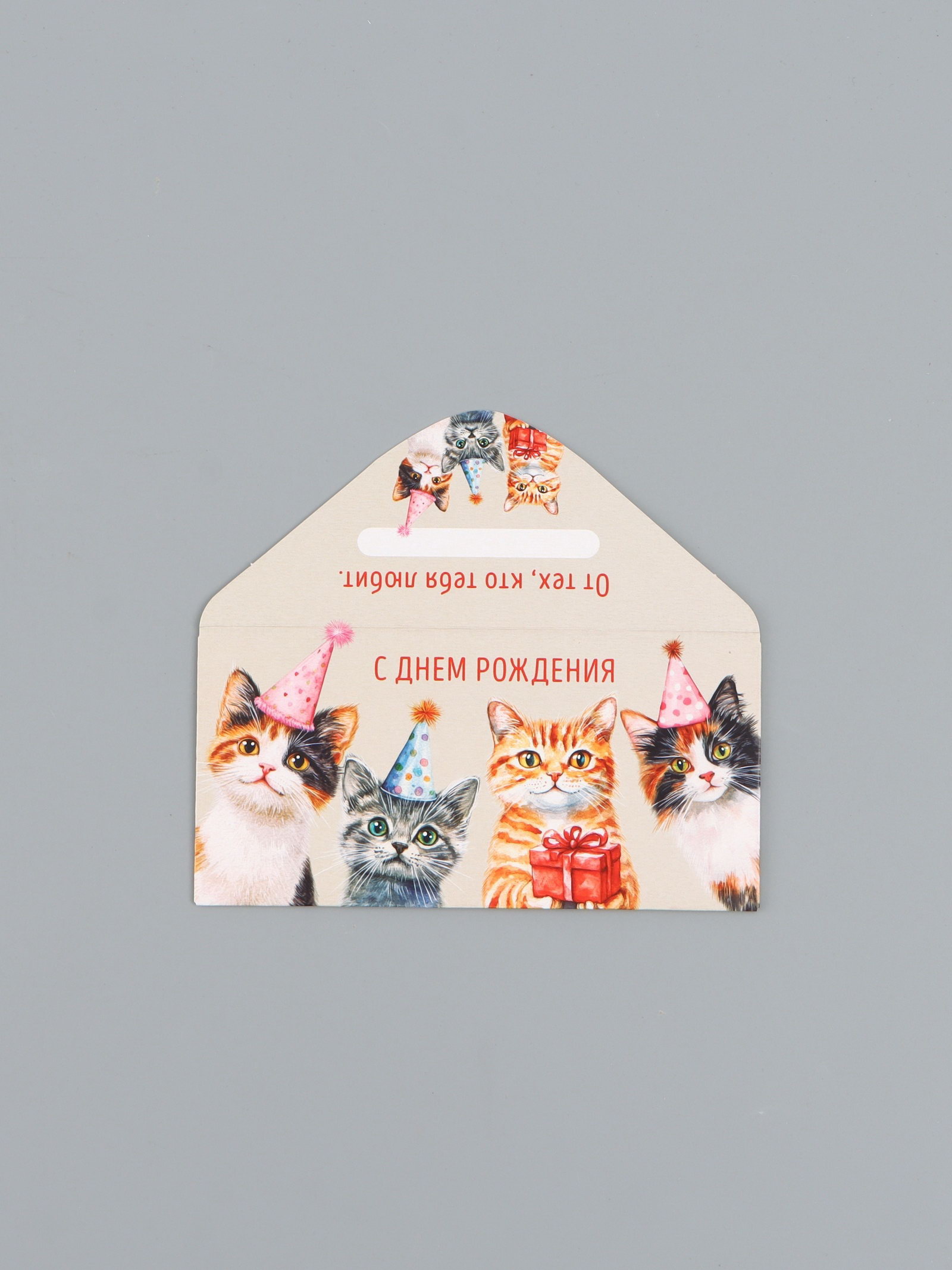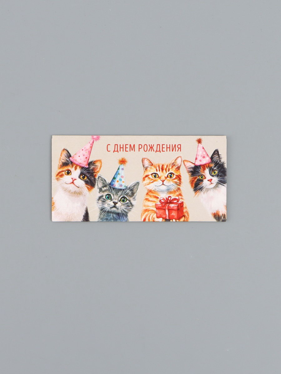 Конверт для денег "С Днем Рождения", котики, 16.5 x 8 см, Россия