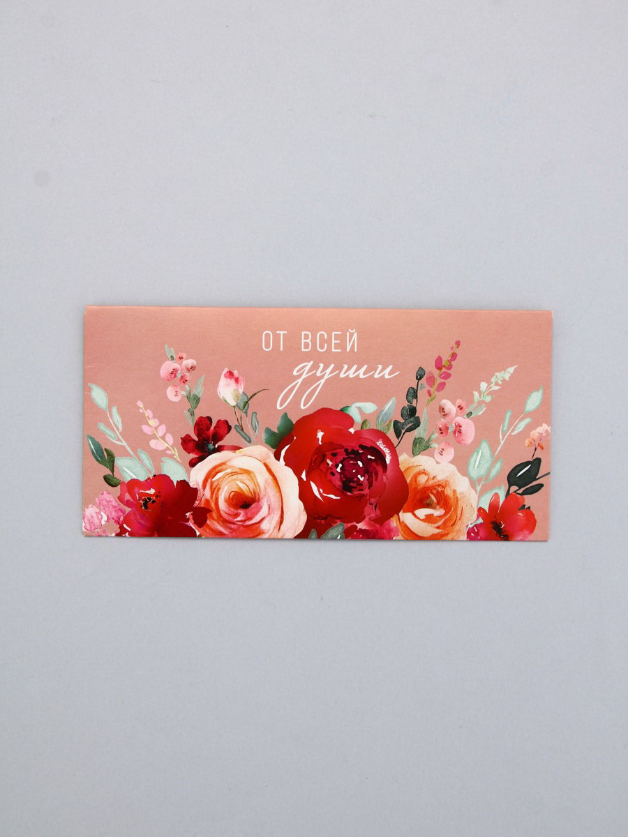 Конверт для денег "От всей души", на розовом, 16.5 x 8 см, Россия