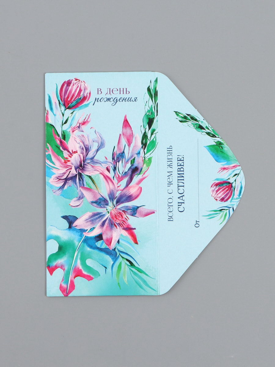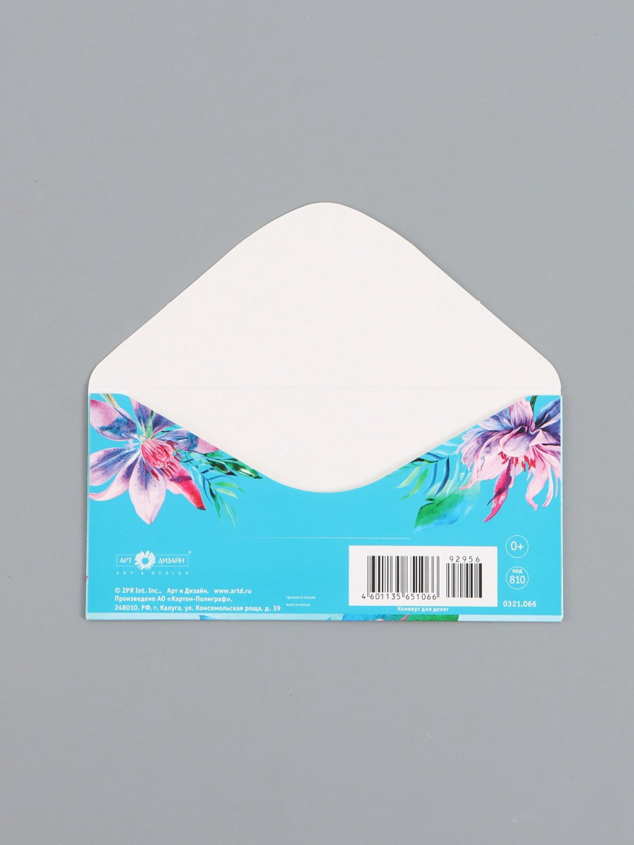 Конверт для денег "В день рождения", голубой и розовый, 16.5 x 8 см, Россия