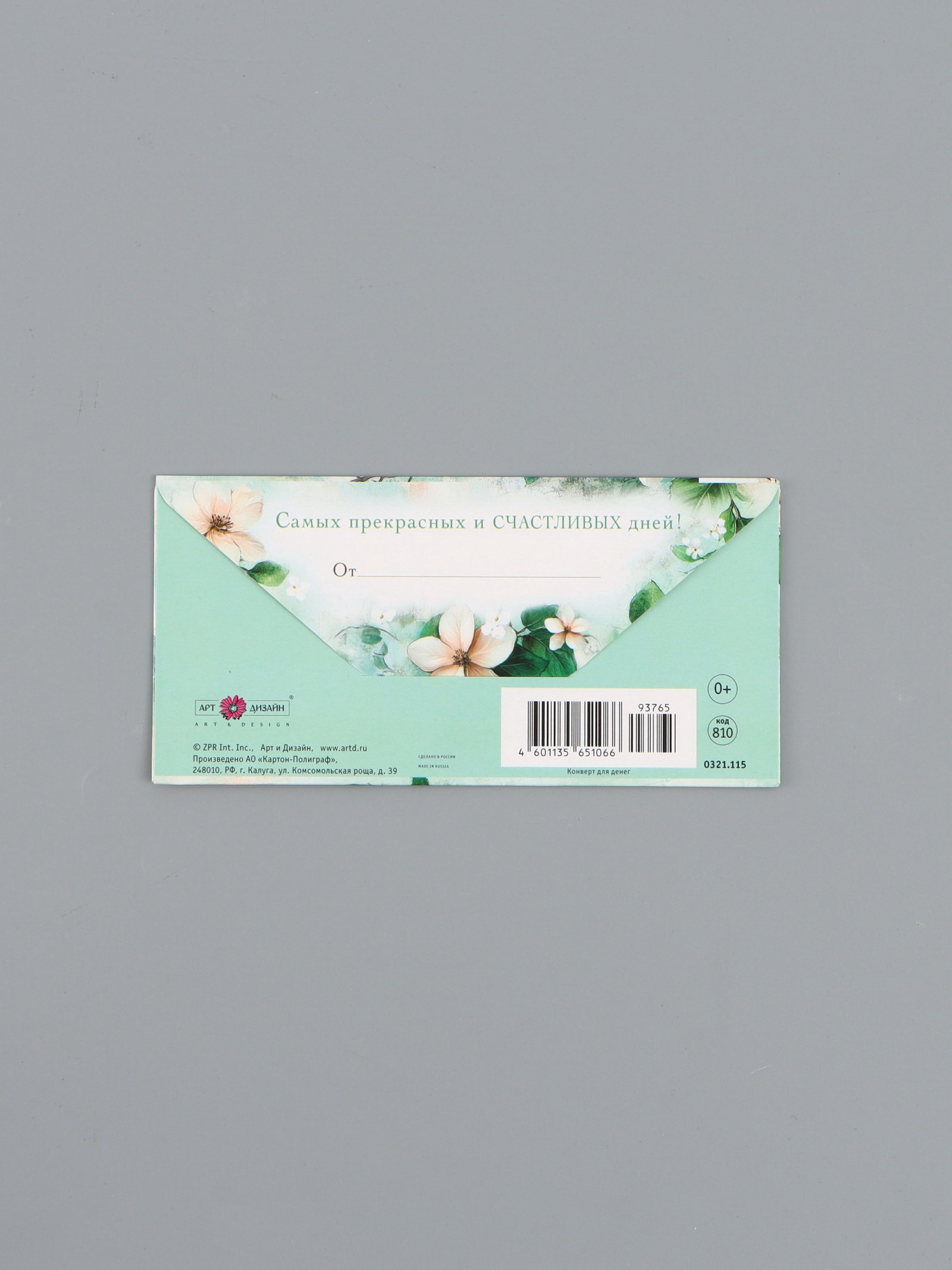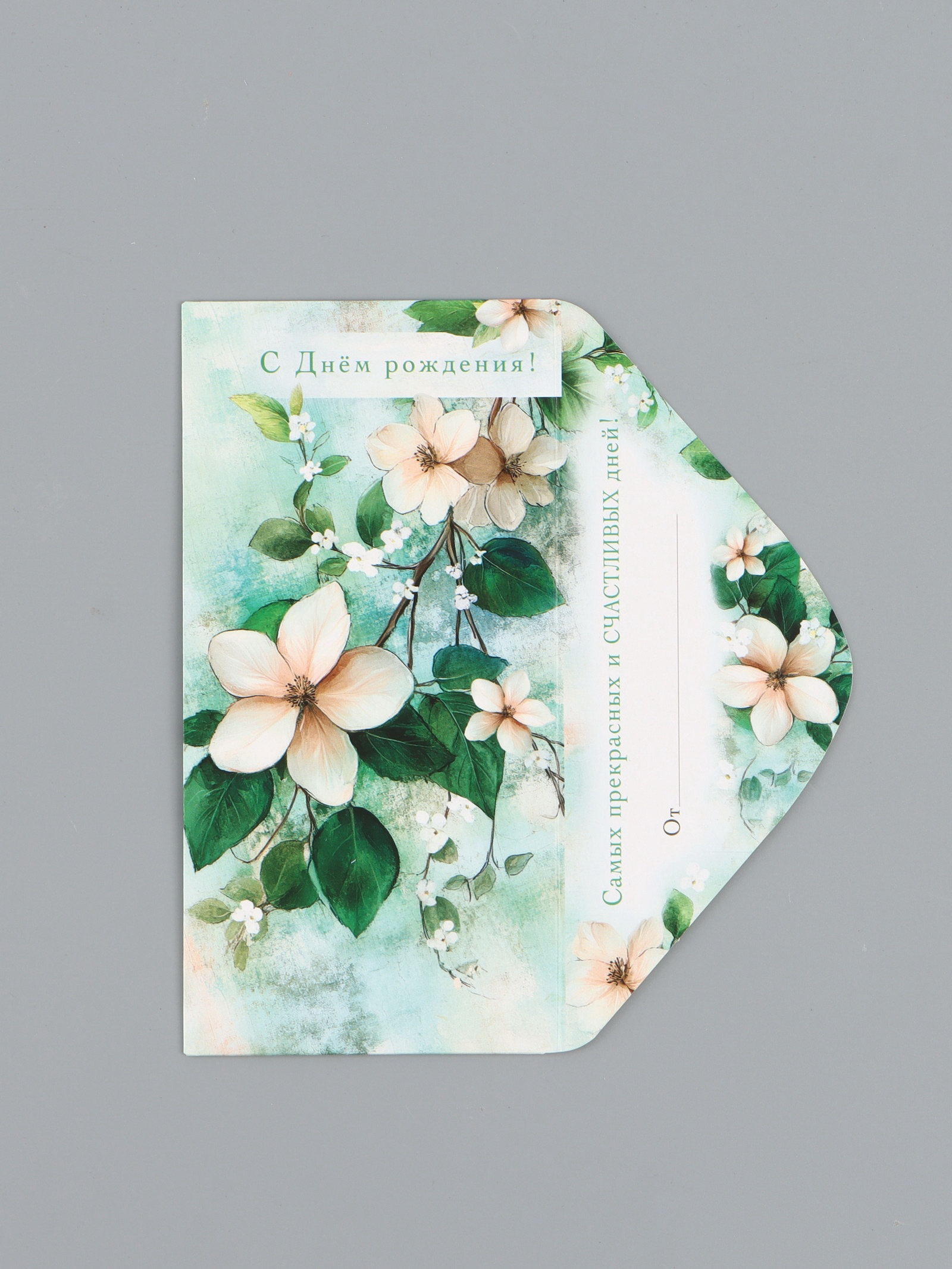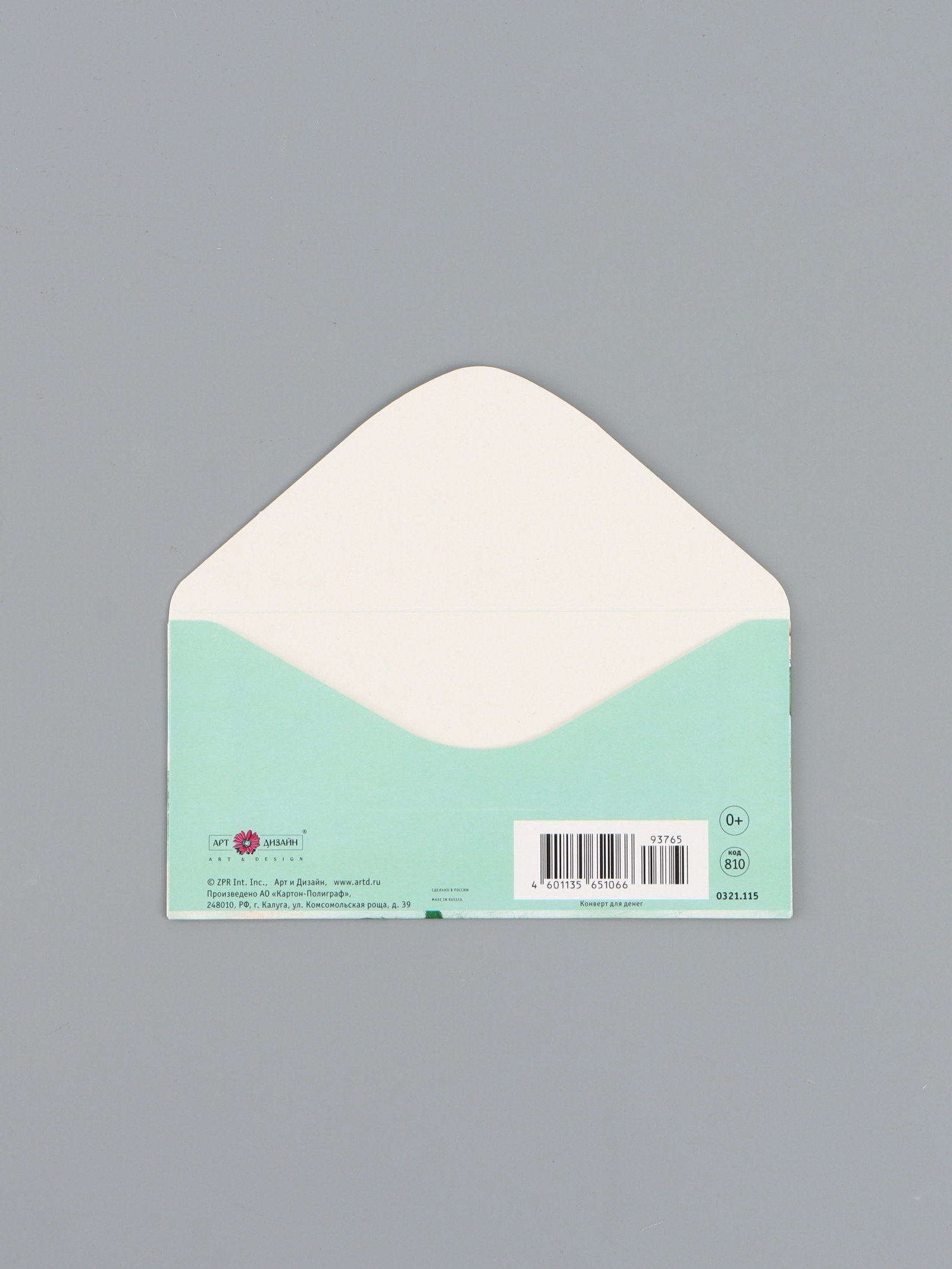Конверт для денег "С Днем Рождения", зелёный, 16.5 x 8 см, Россия