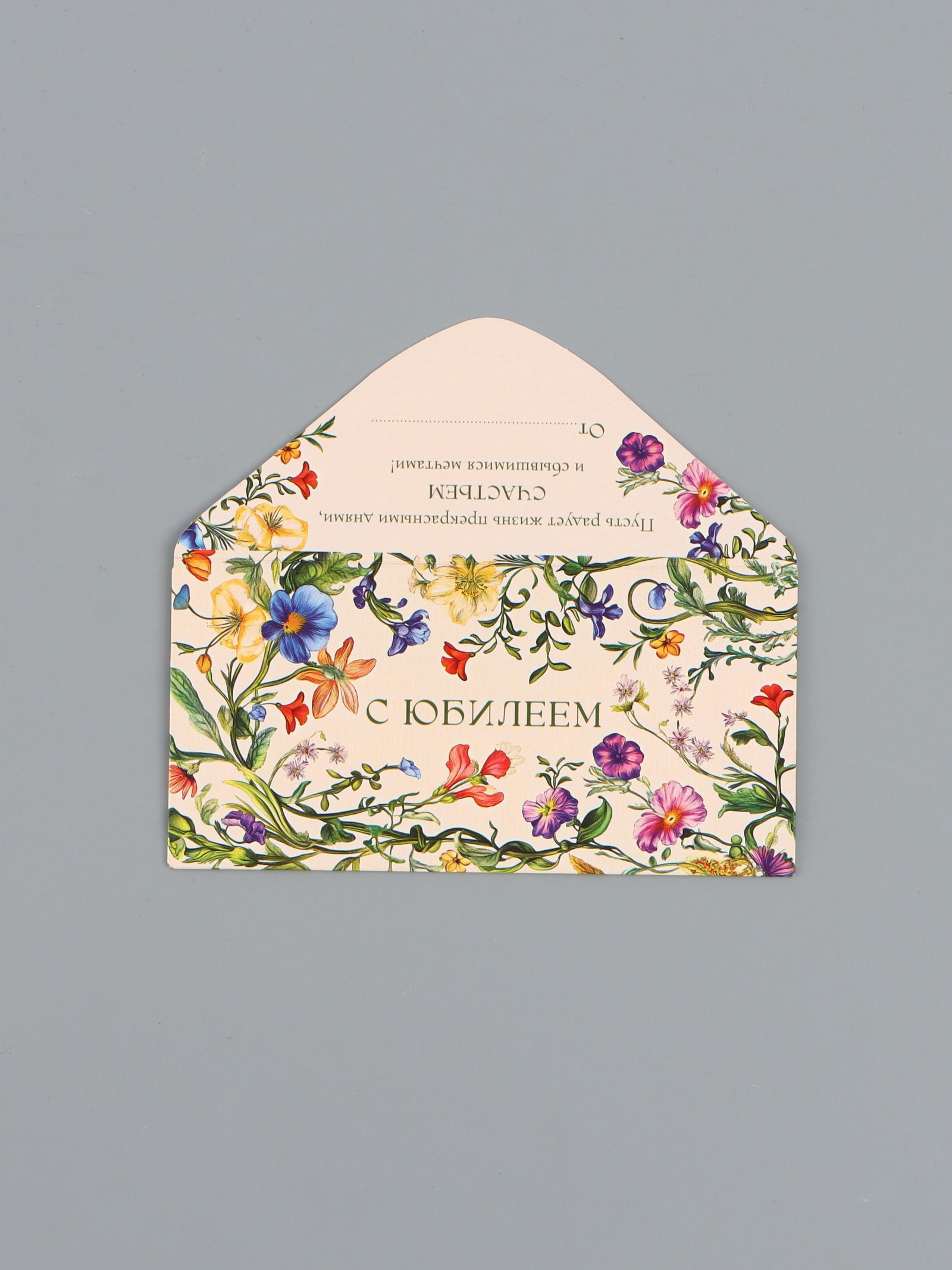 Конверт для денег "С юбилеем", на светлом, 16.5 x 8 см, Россия