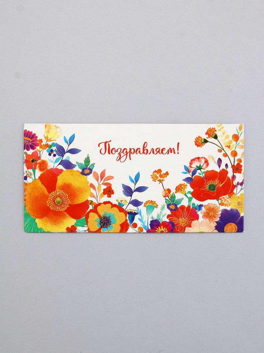 Конверт для денег "Поздравляем!", яркие цветы, 16.5 x 8 см, Россия