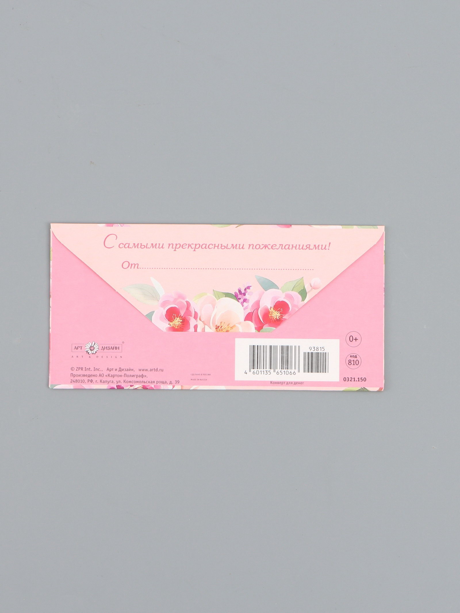 Конверт для денег "Поздравляю", на розовом, 16.5 x 8 см, Россия