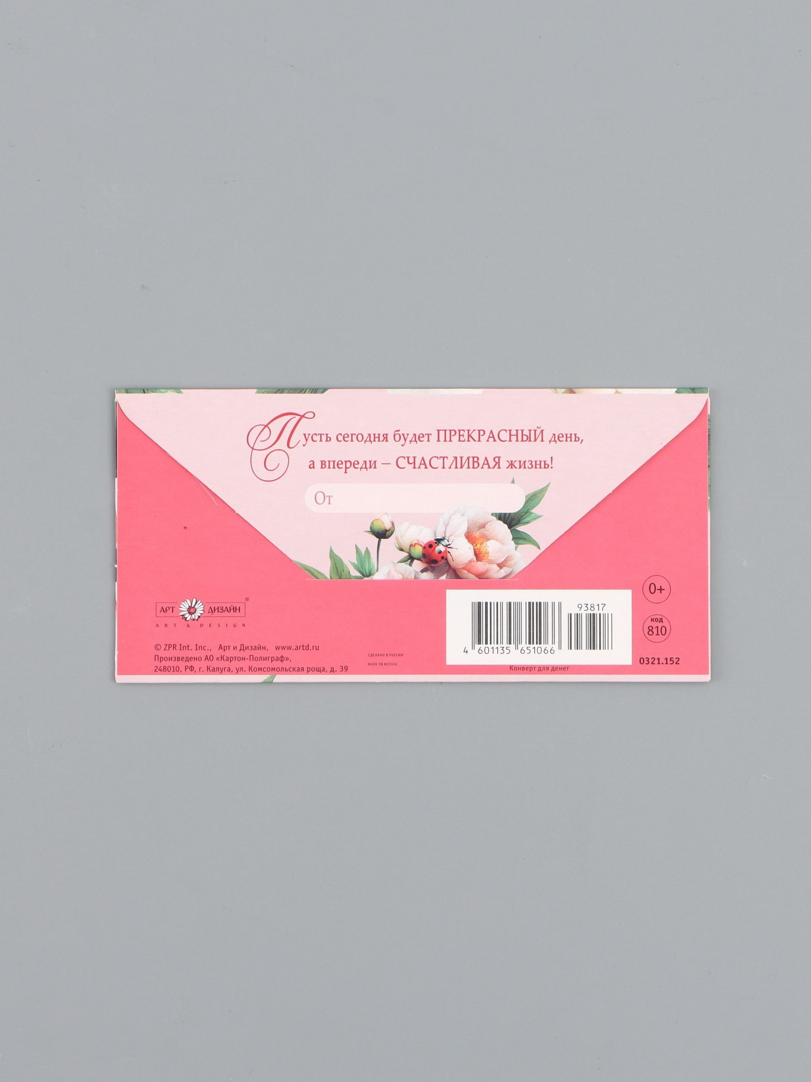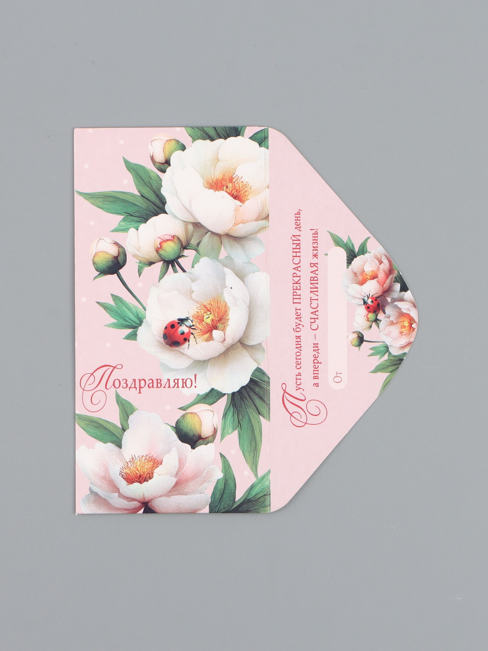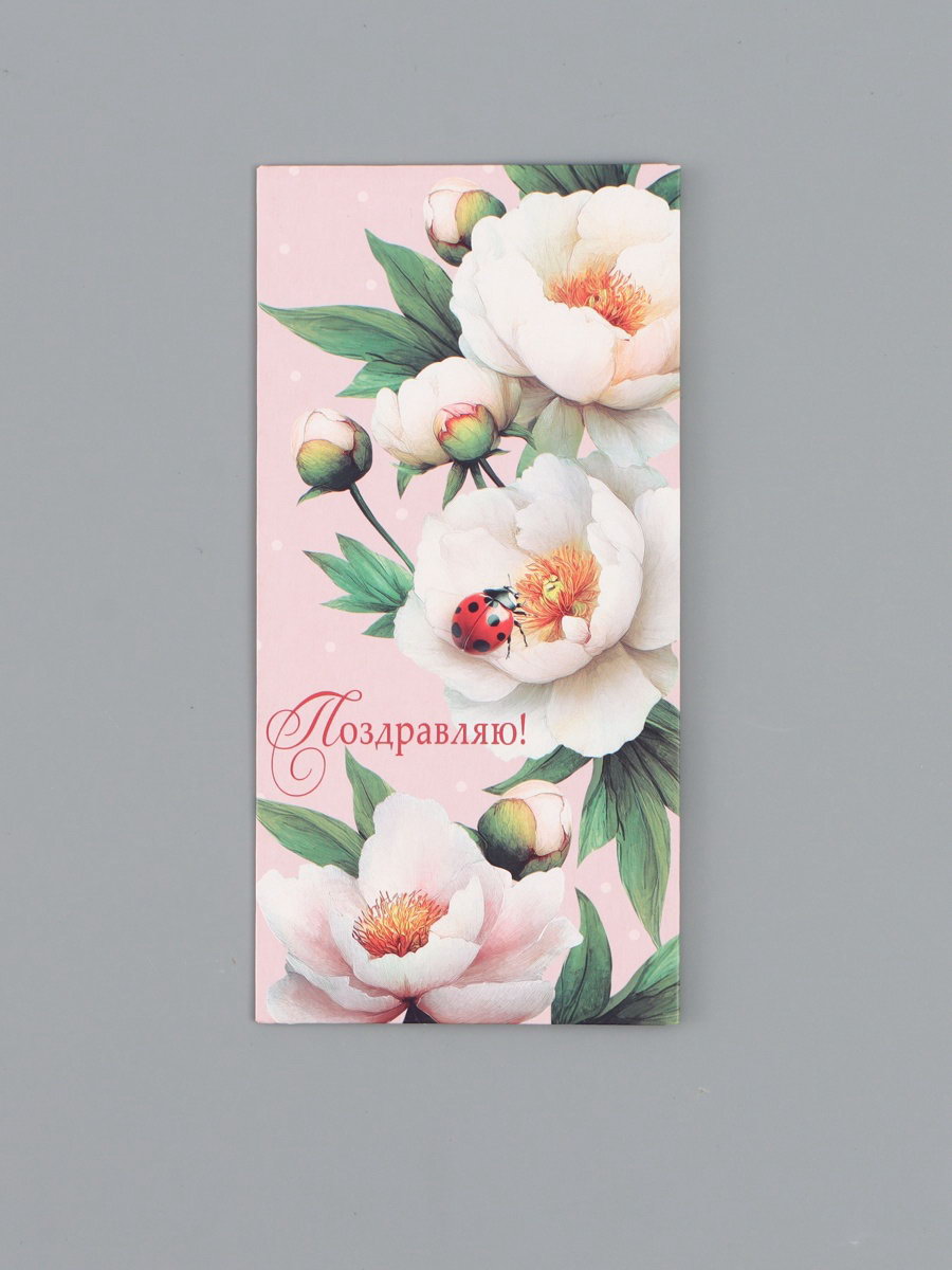 Конверт для денег "Поздравляю!", белые цветы, 16.5 x 8 см, Россия