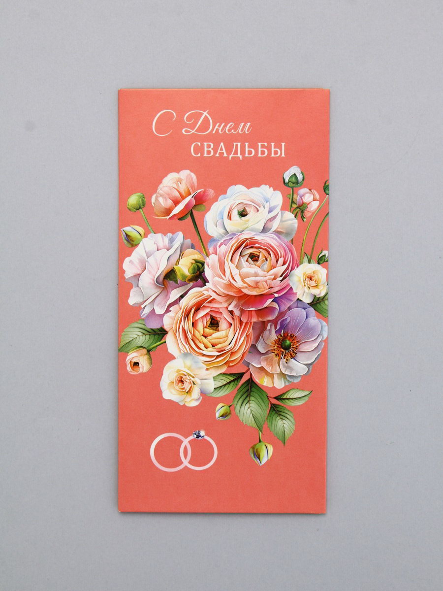 Конверт для денег "С Днем Свадьбы", кольца на розовом, 16.5 x 8 см, Россия