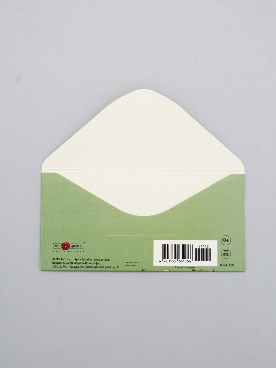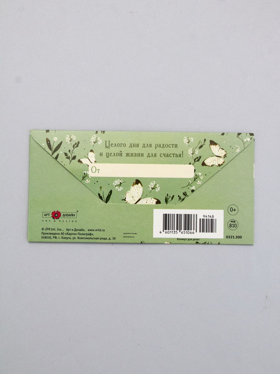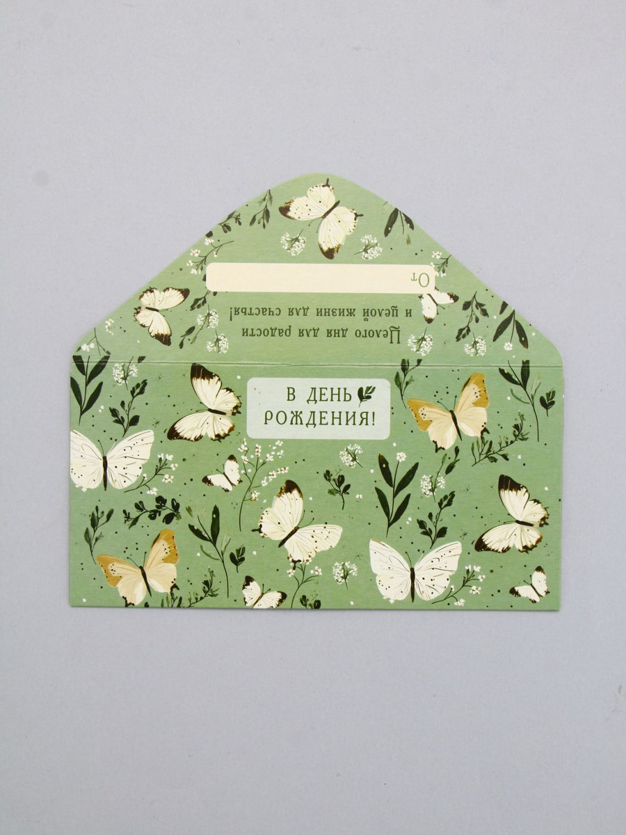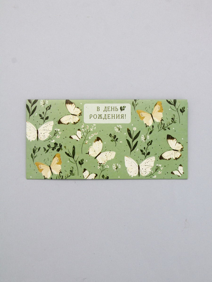 Конверт для денег "В День Рождения!", бабочки на зелёном, 16.5 x 8 см, Россия