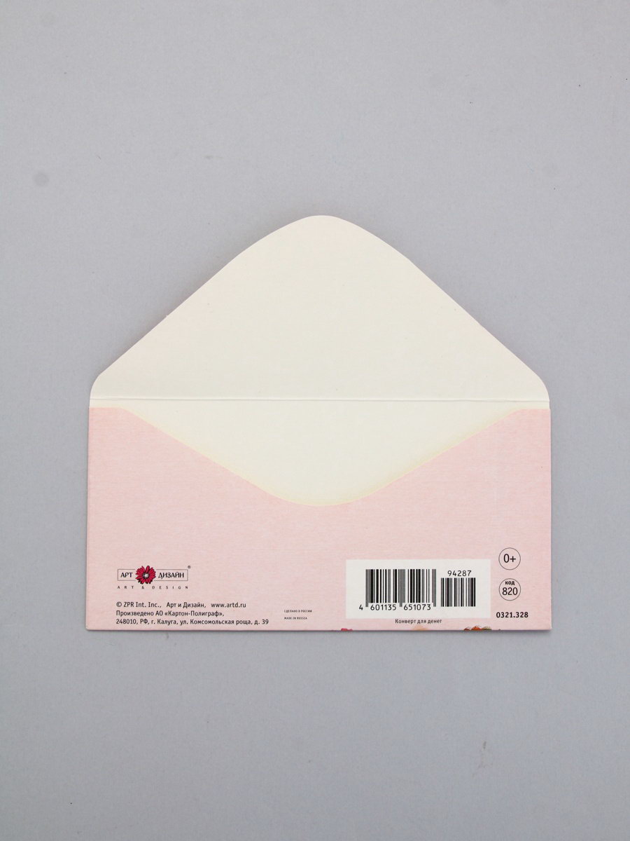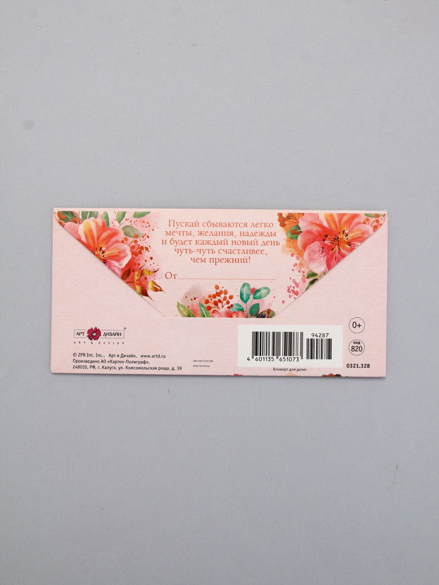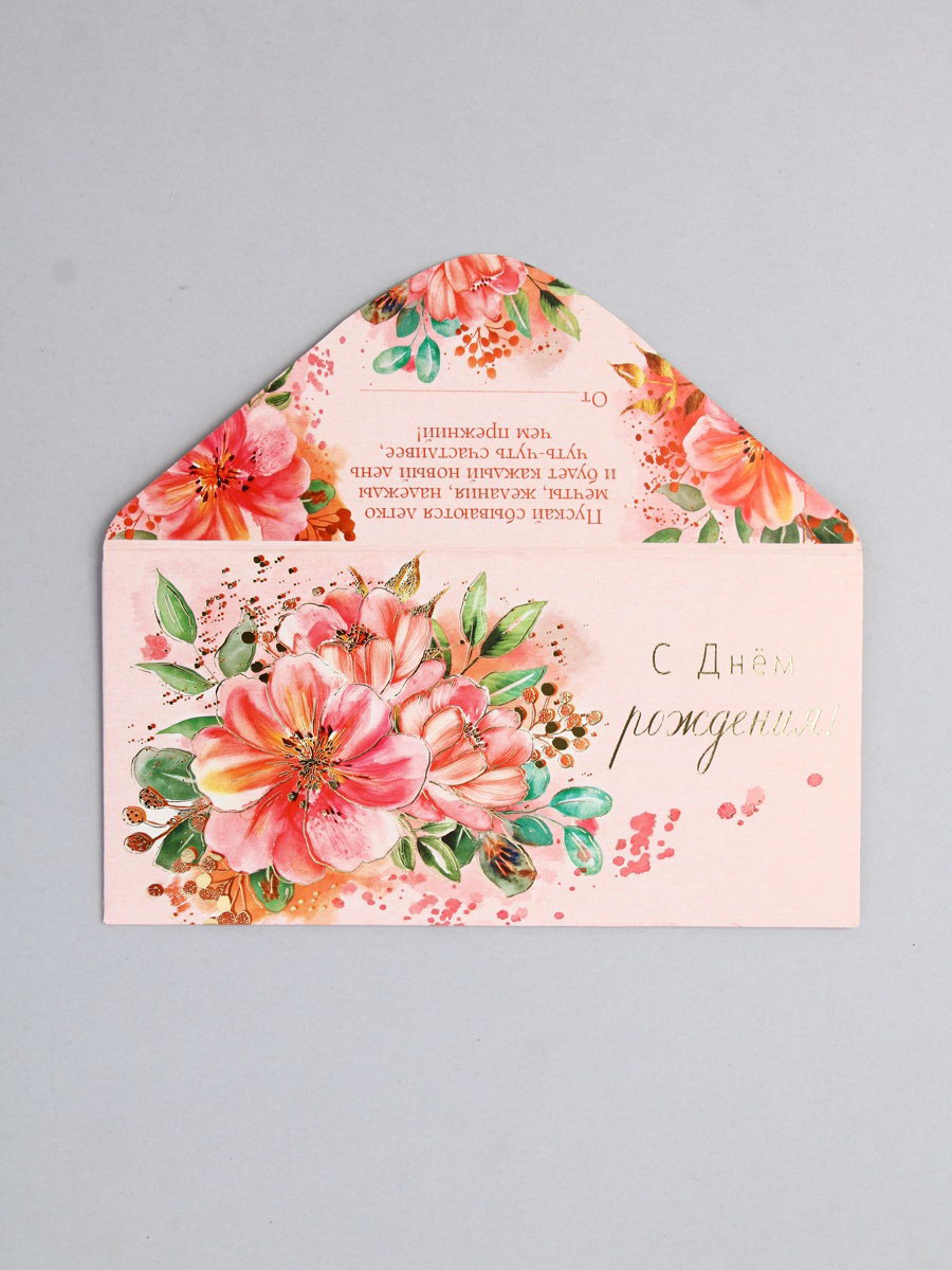 Конверт для денег "С днём рождения", 3 цветка, 16.5 x 8 см, Россия