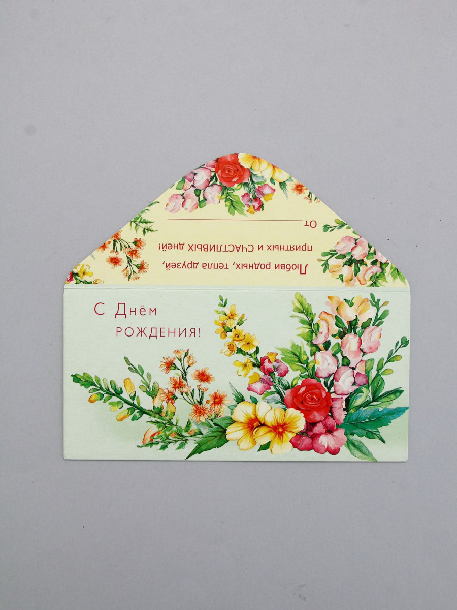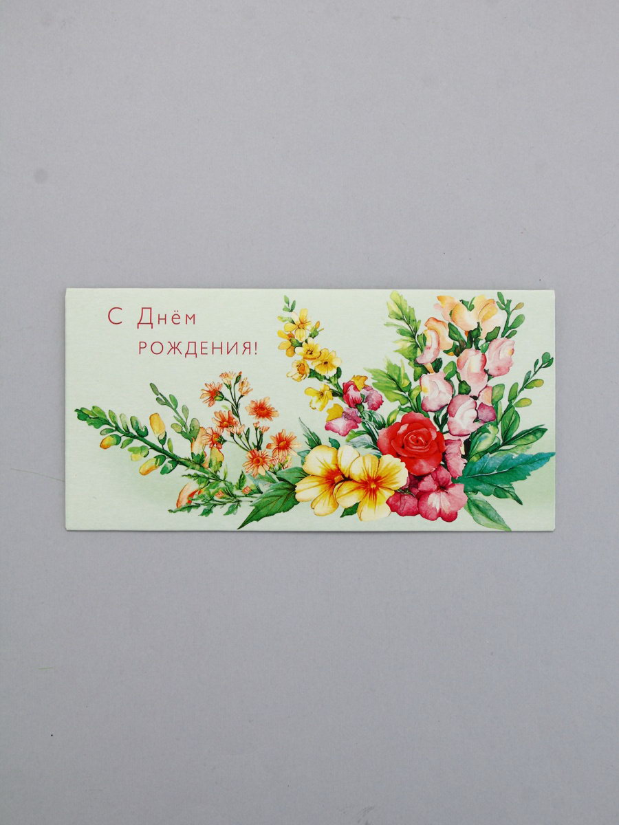Конверт для денег "С днём рождения", букет, 16.5 x 8 см, Россия