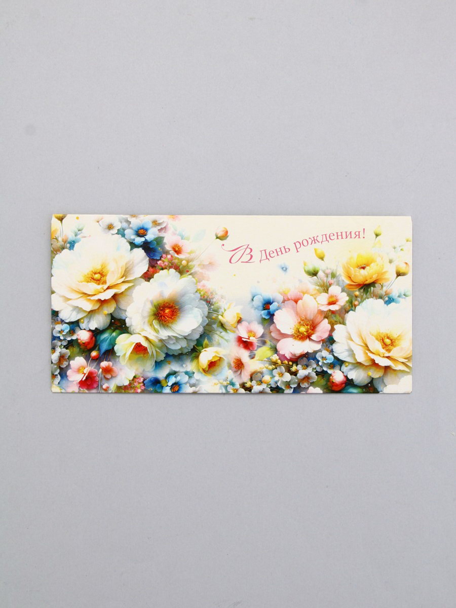 Конверт для денег "В День Рождения!", нежные цветы, 16.5 x 8 см, Россия