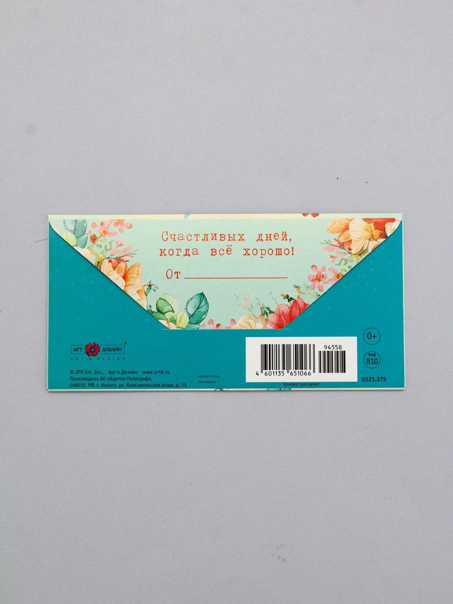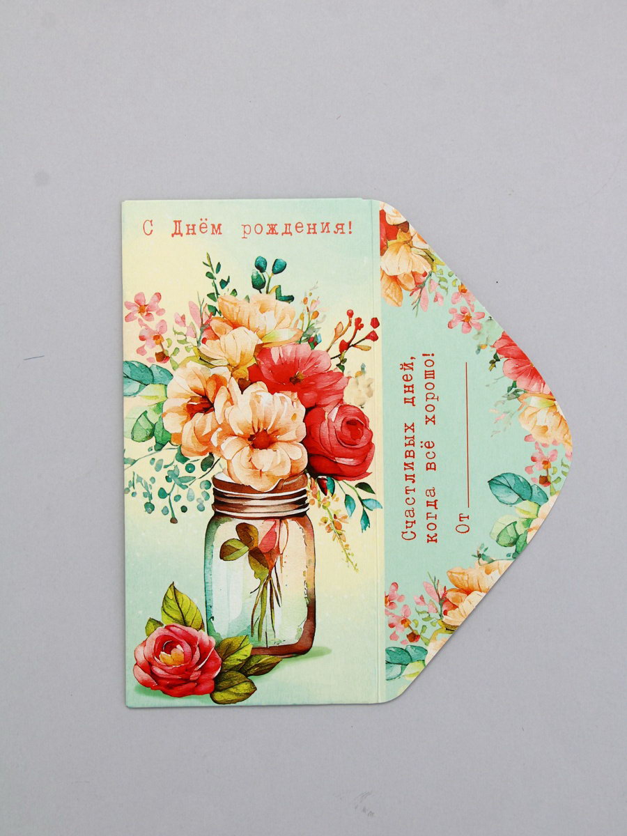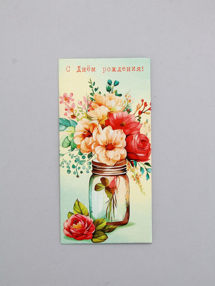 Конверт для денег "В День Рождения!", ваза с цветами, 16.5 x 8 см, Россия