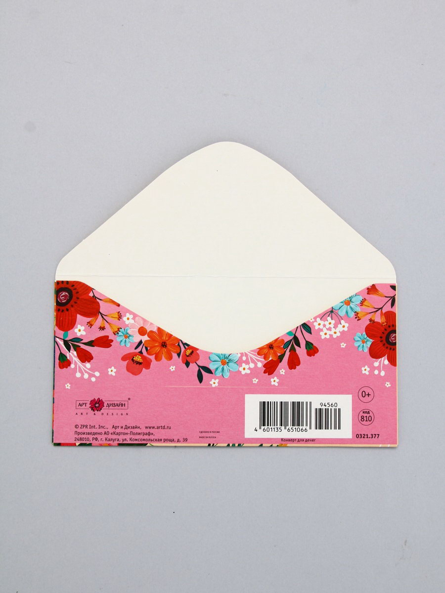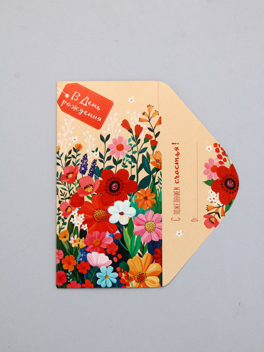 Конверт для денег "В День Рождения!", яркие цветы на светлом, 16.5 x 8 см, Россия