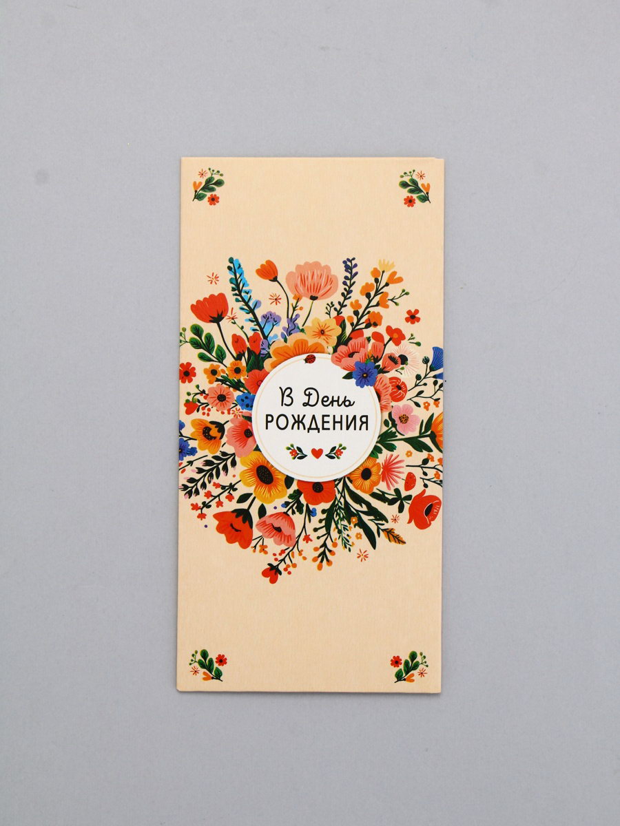 Конверт для денег "В День Рождения", плашка, 16.5 x 8 см, Россия