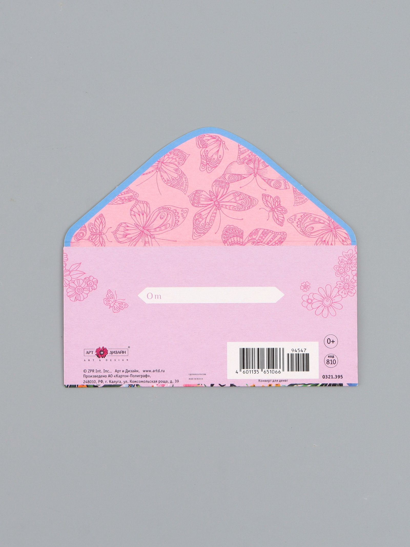 Конверт для денег "Бабочки и цветы", 16.5 x 8 см, Россия