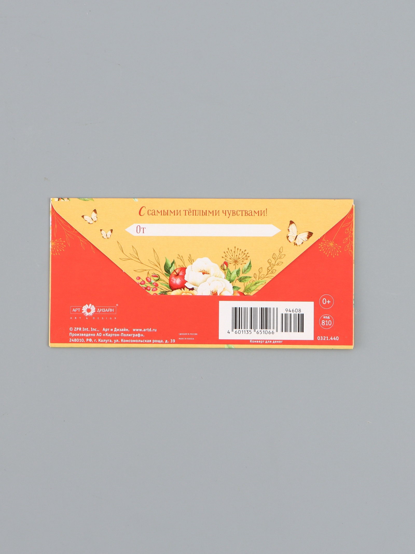 Конверт для денег "Цветы и яблоки", 16.5 x 8 см, Россия
