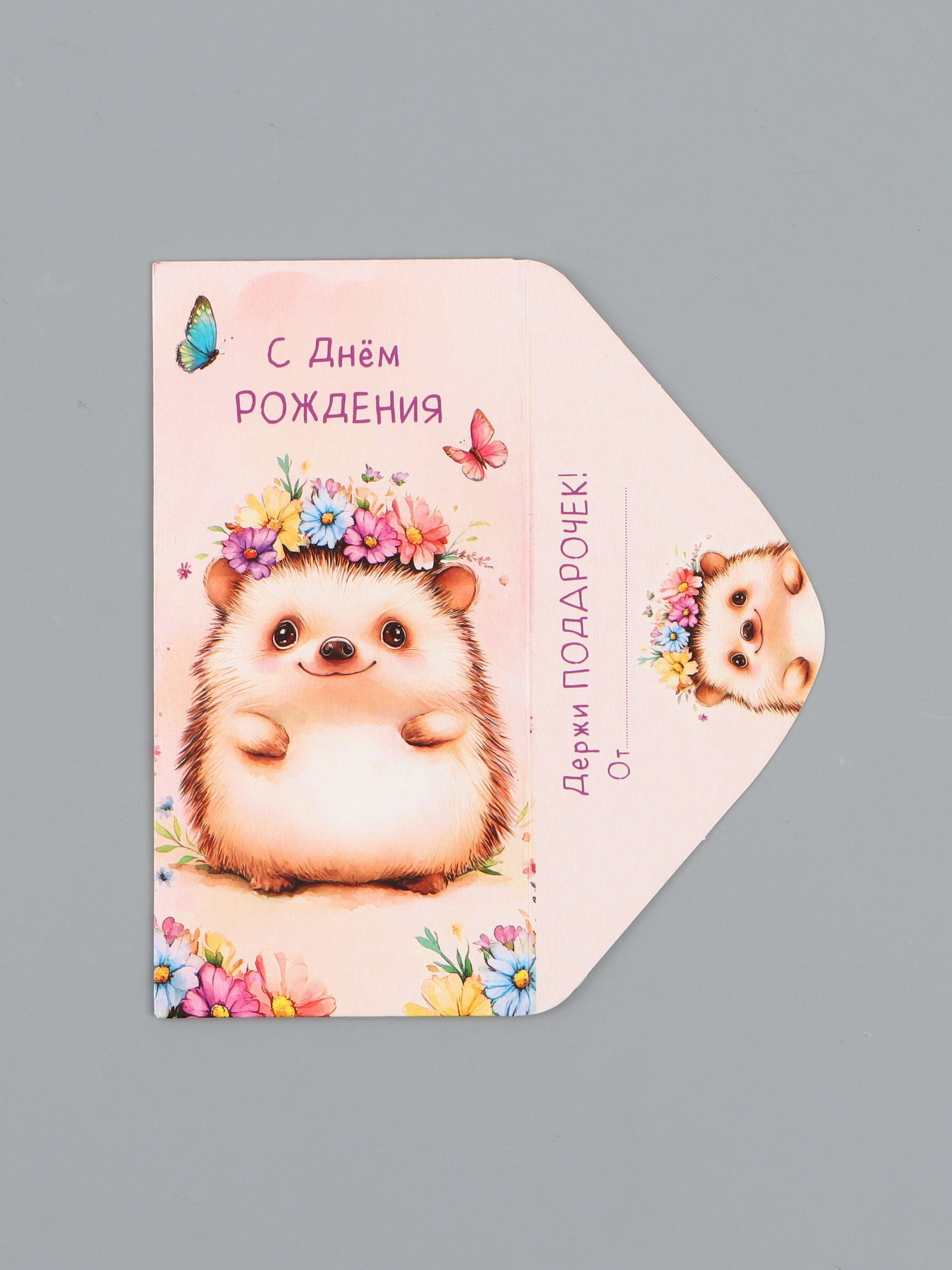 Конверт для денег "С Днем Рождения!", ёж, 16.5 x 8 см, Россия