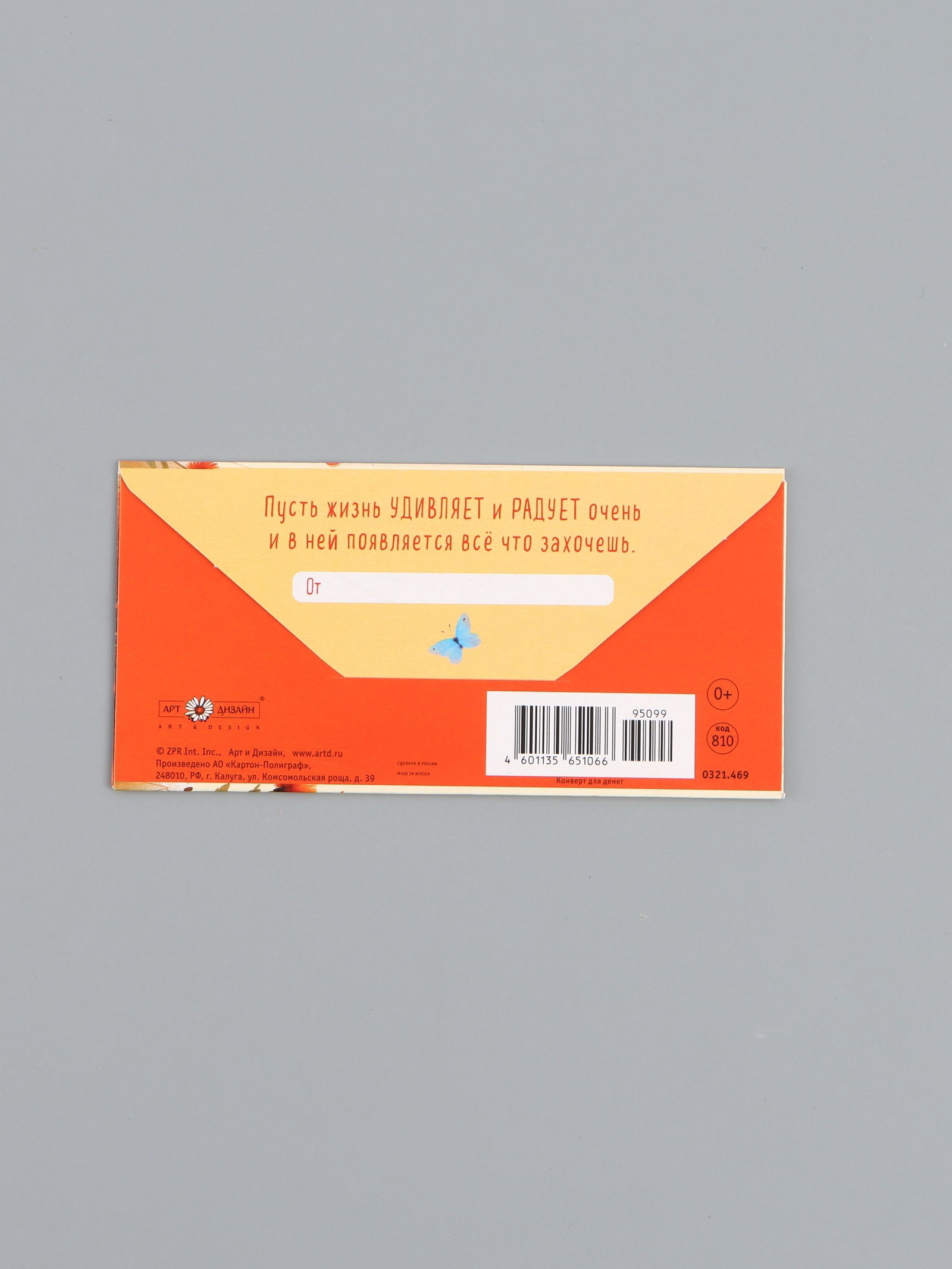 Конверт для денег "Счастливого Дня Рождения", мишка, 16.5 x 8 см, Россия