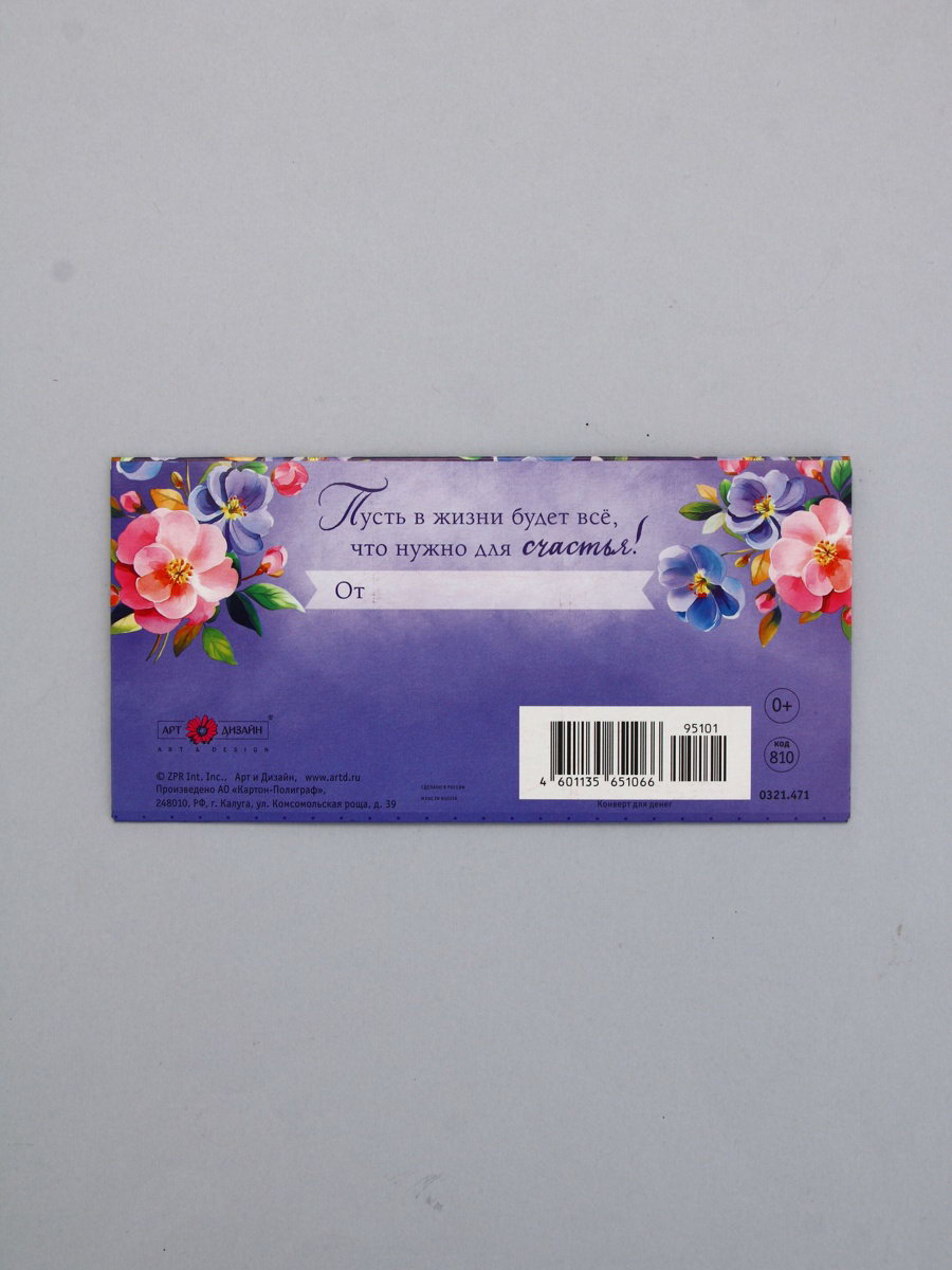 Конверт для денег "Поздравляю!", синий, 16.5 x 8 см, Россия
