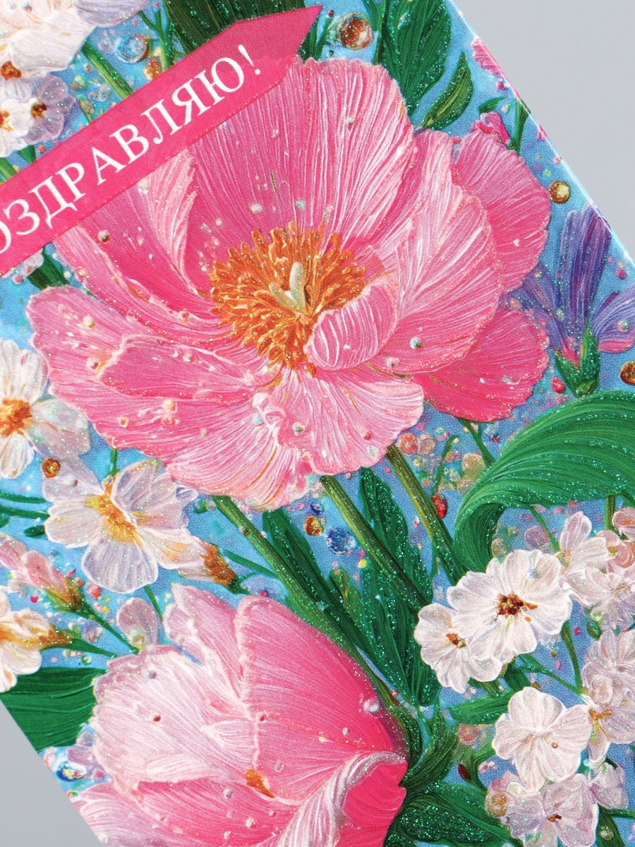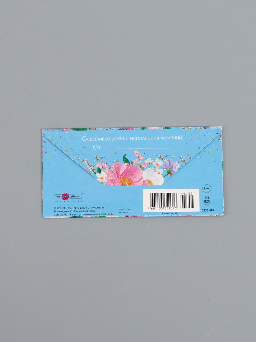 Конверт для денег "Поздравляю!", объемные цветы, 16.5 x 8 см, Россия