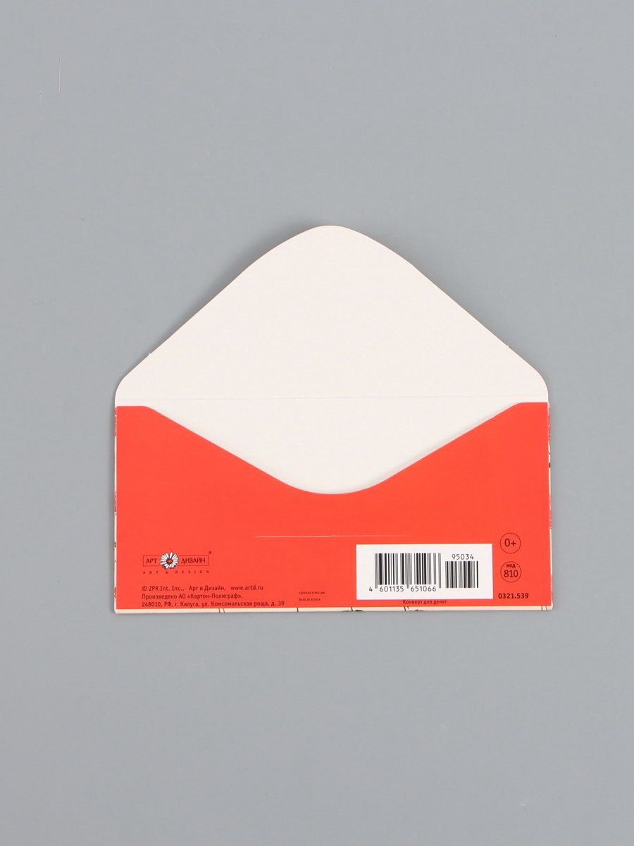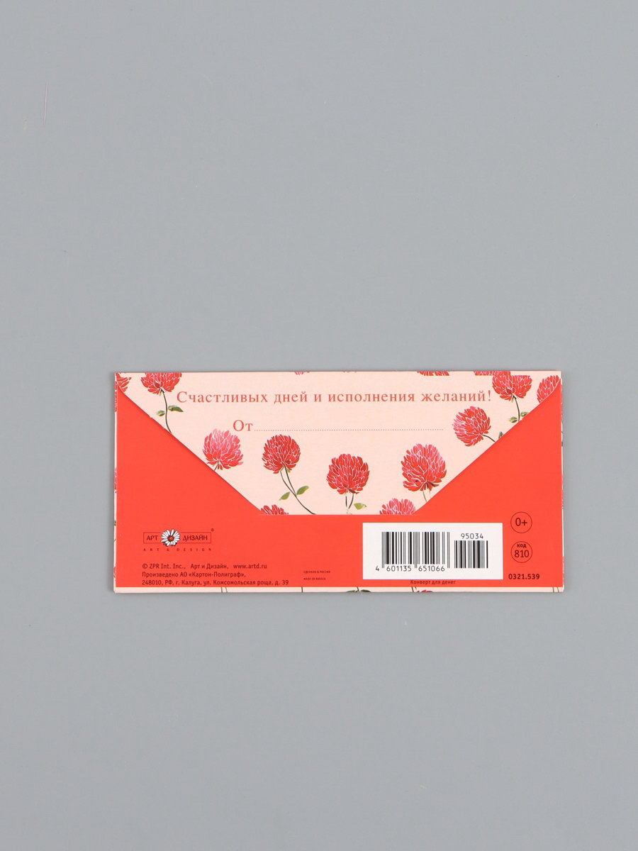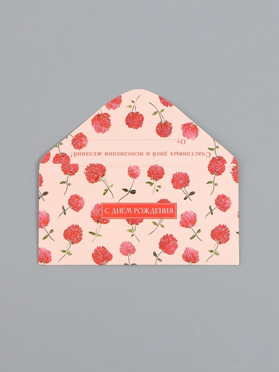 Конверт для денег "В День Рождения!", красные цветы, 16.5 x 8 см, Россия