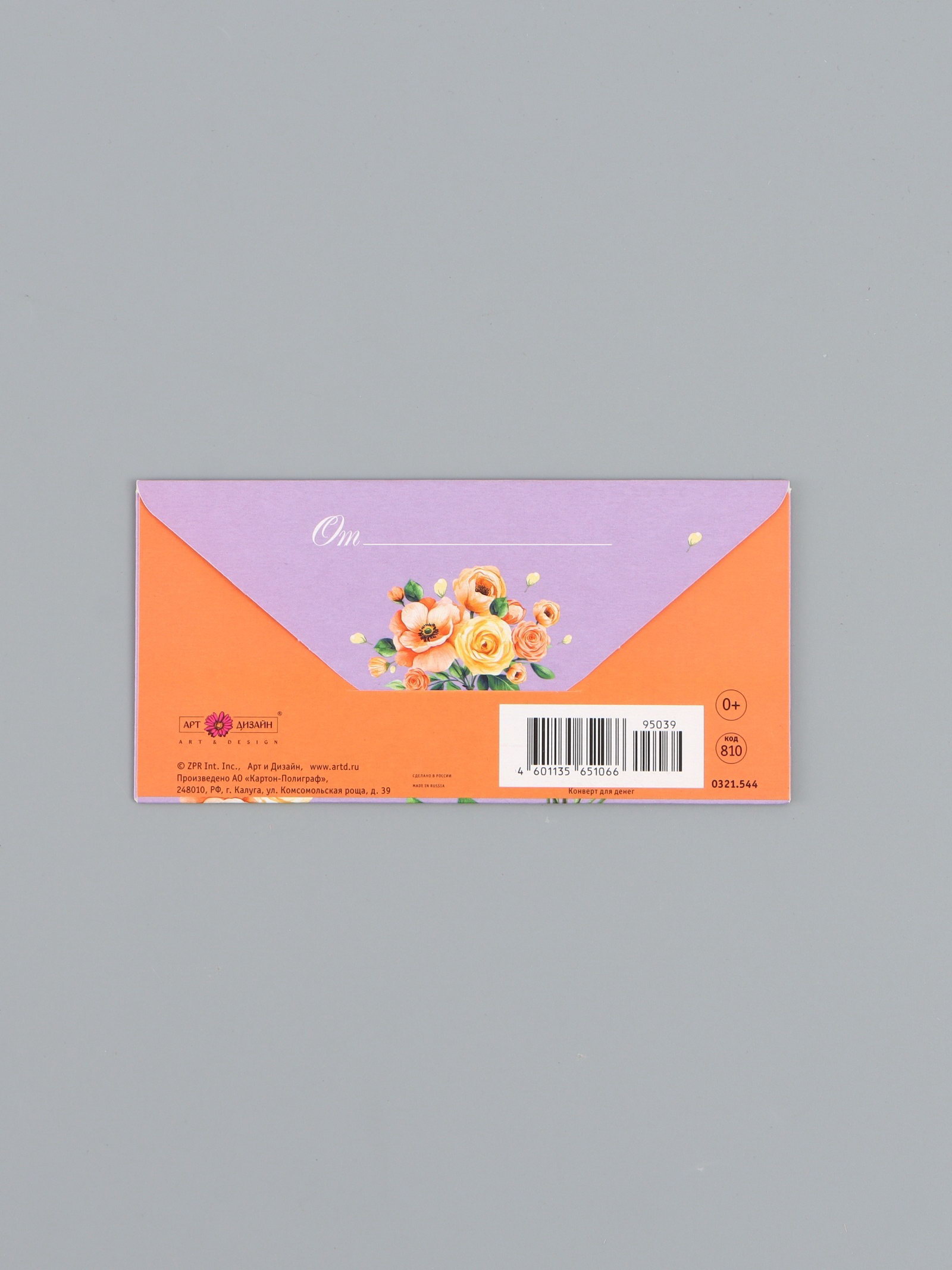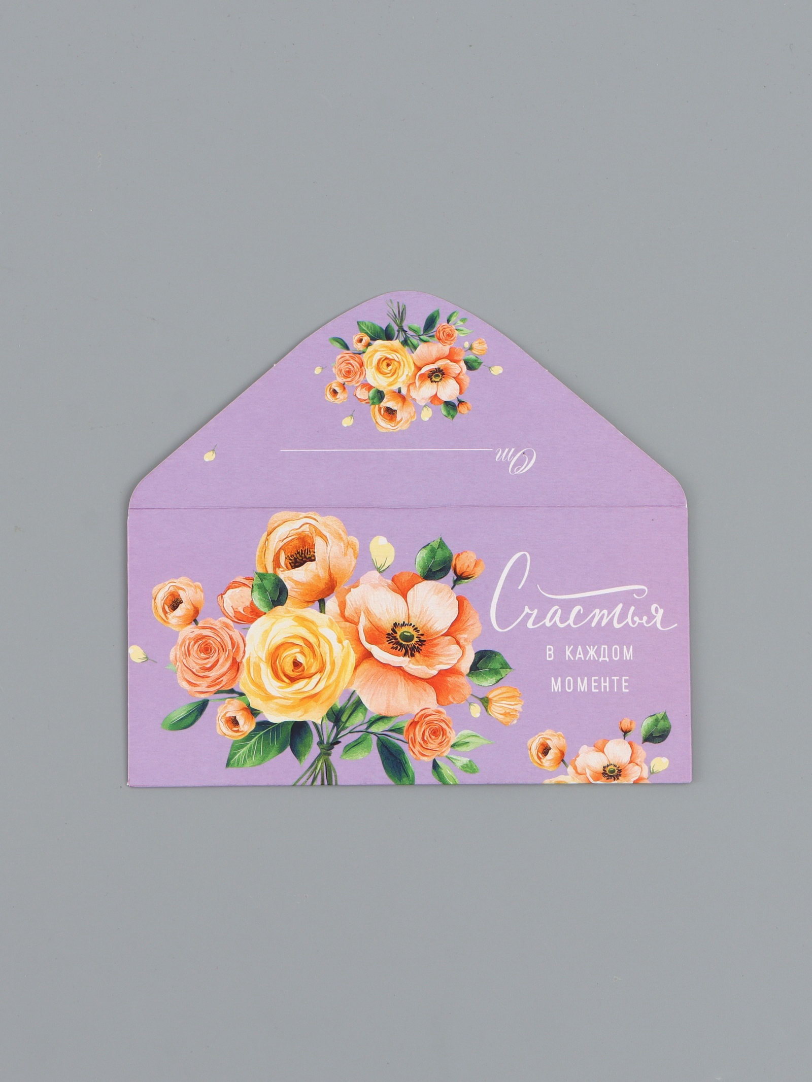 Конверт для денег "Счастья в каждом моменте", нежный, 16.5 x 8 см, Россия