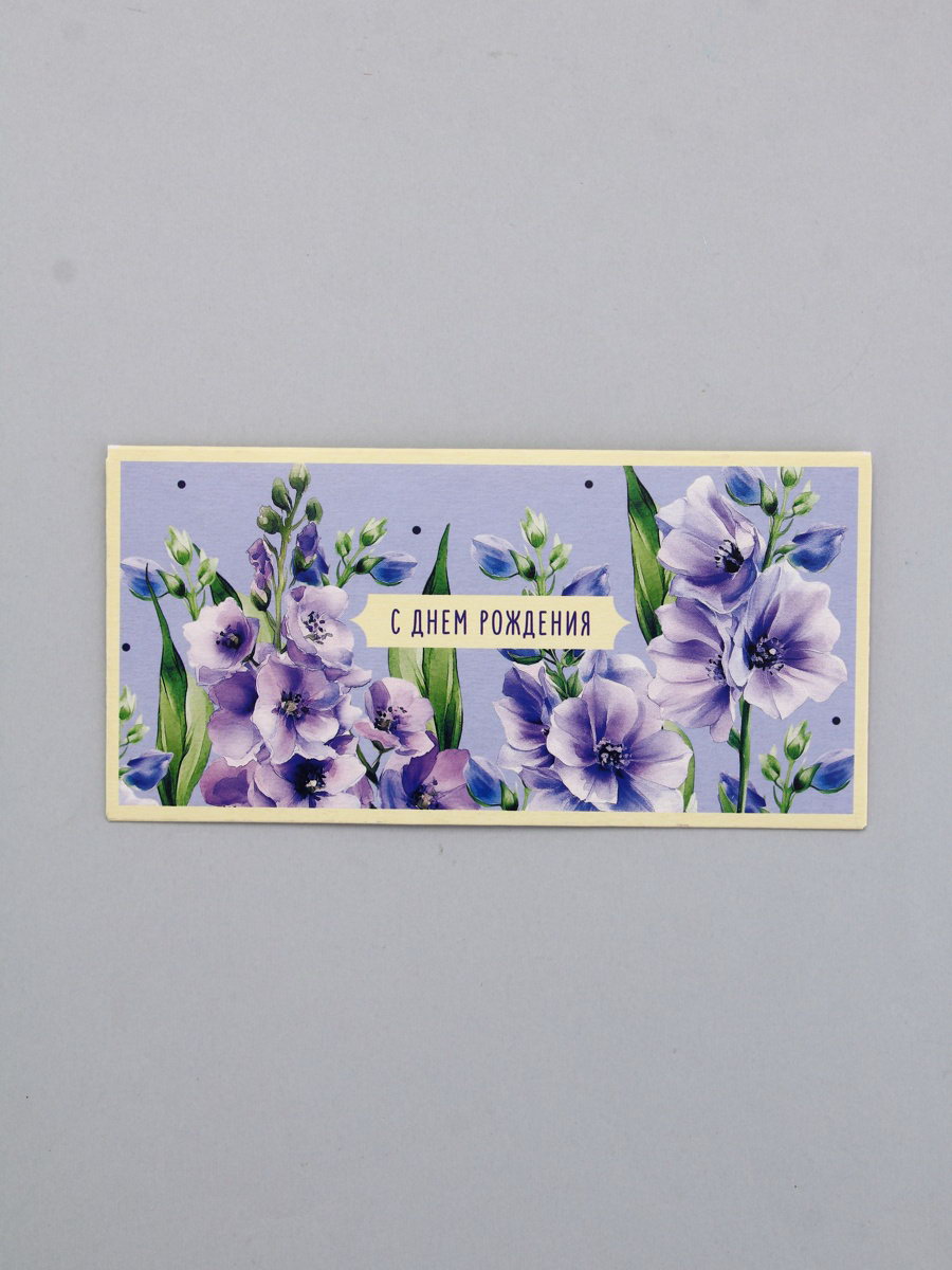 Конверт для денег "С Днем Рождения", бежевый и сиреневый, 16.5 x 8 см, Россия