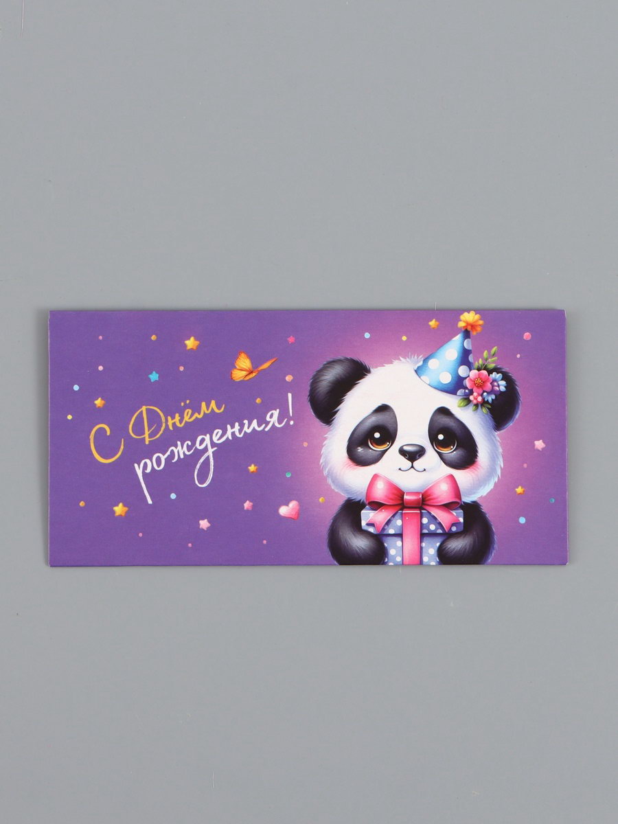 Конверт для денег "С Днем Рождения!", панда, 16.5 x 8 см, Россия