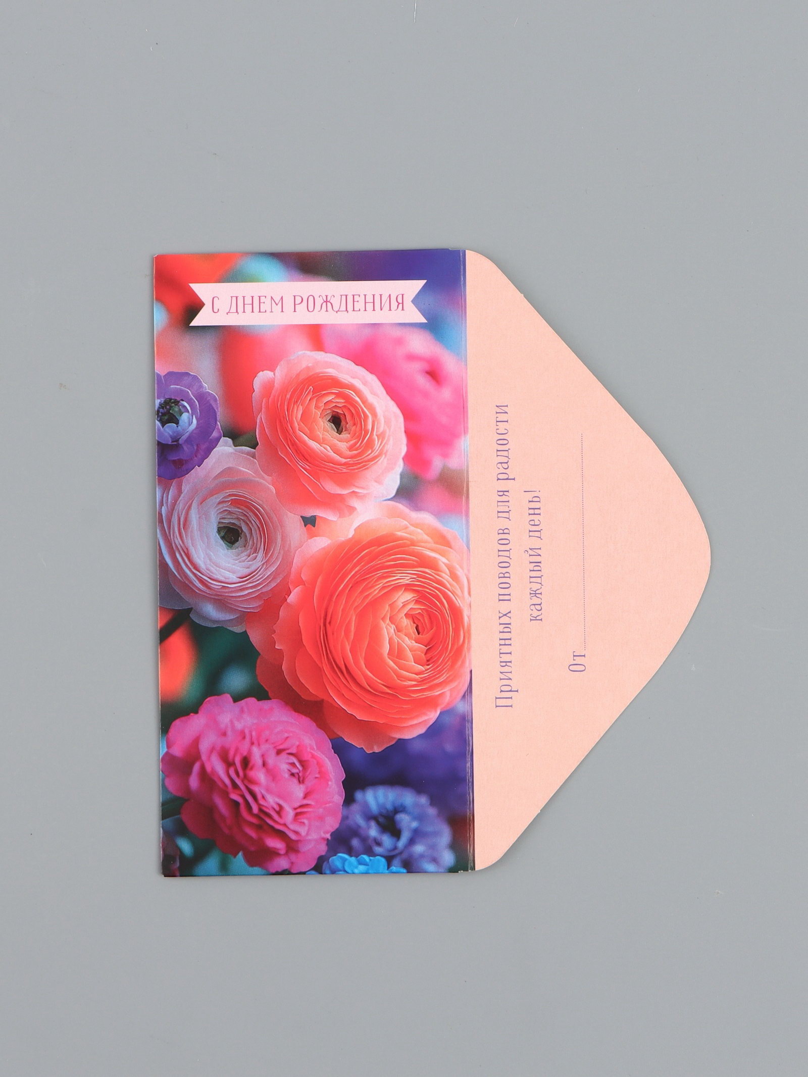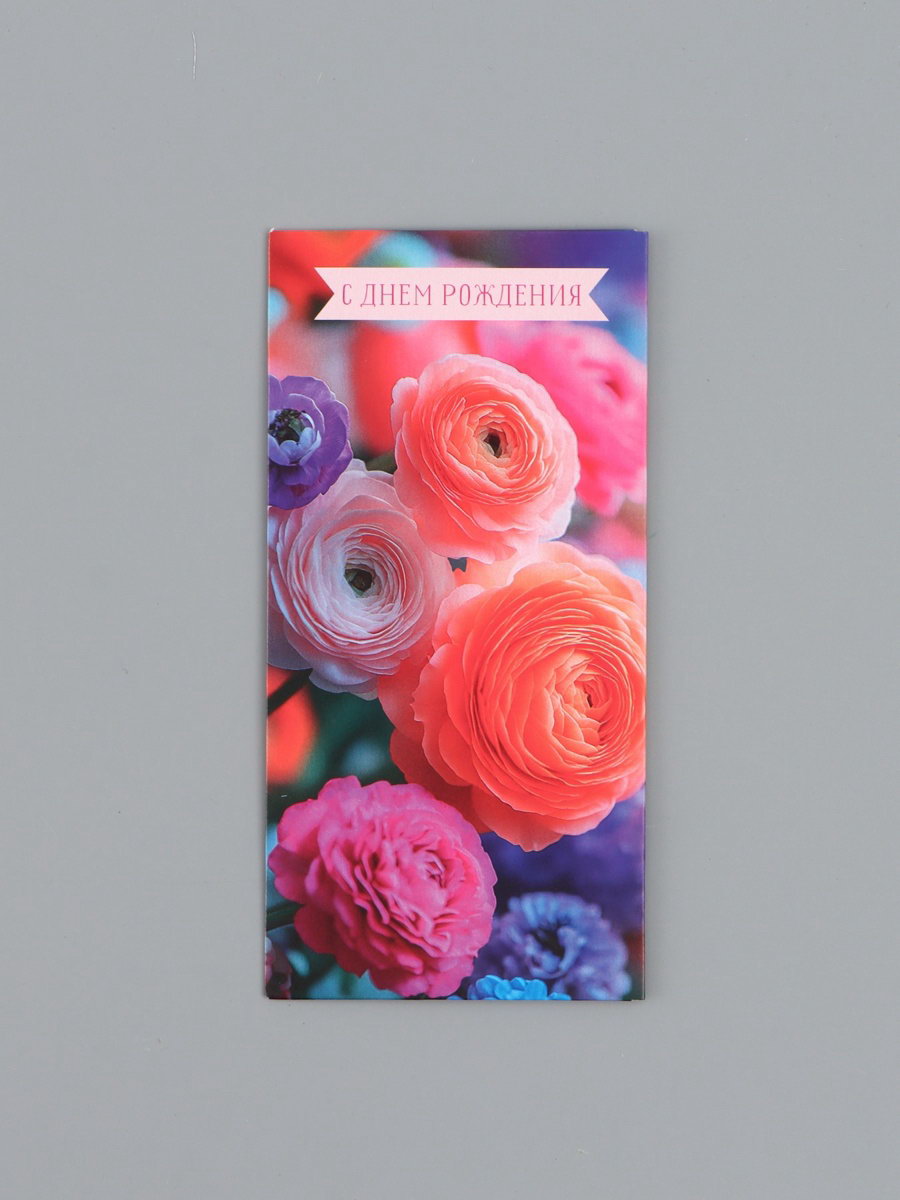 Конверт для денег "С Днем Рождения!", реалистичные цветы, 16.5 x 8 см, Россия
