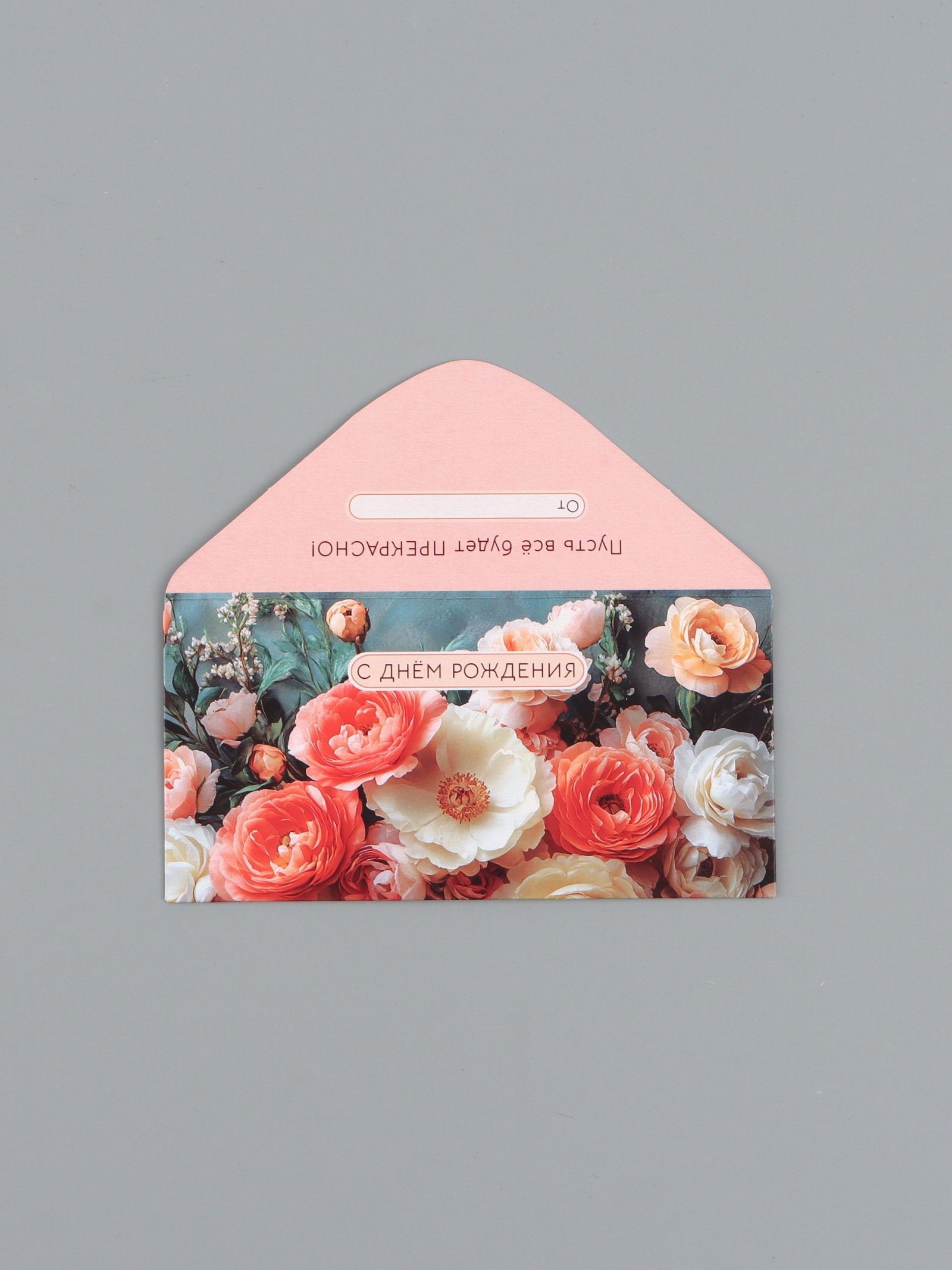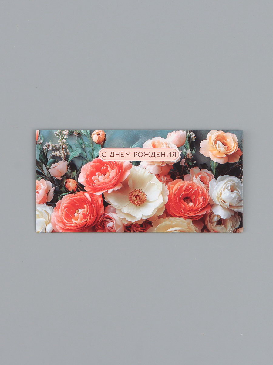 Конверт для денег "С Днем Рождения!", шикарные цветы, 16.5 x 8 см, Россия