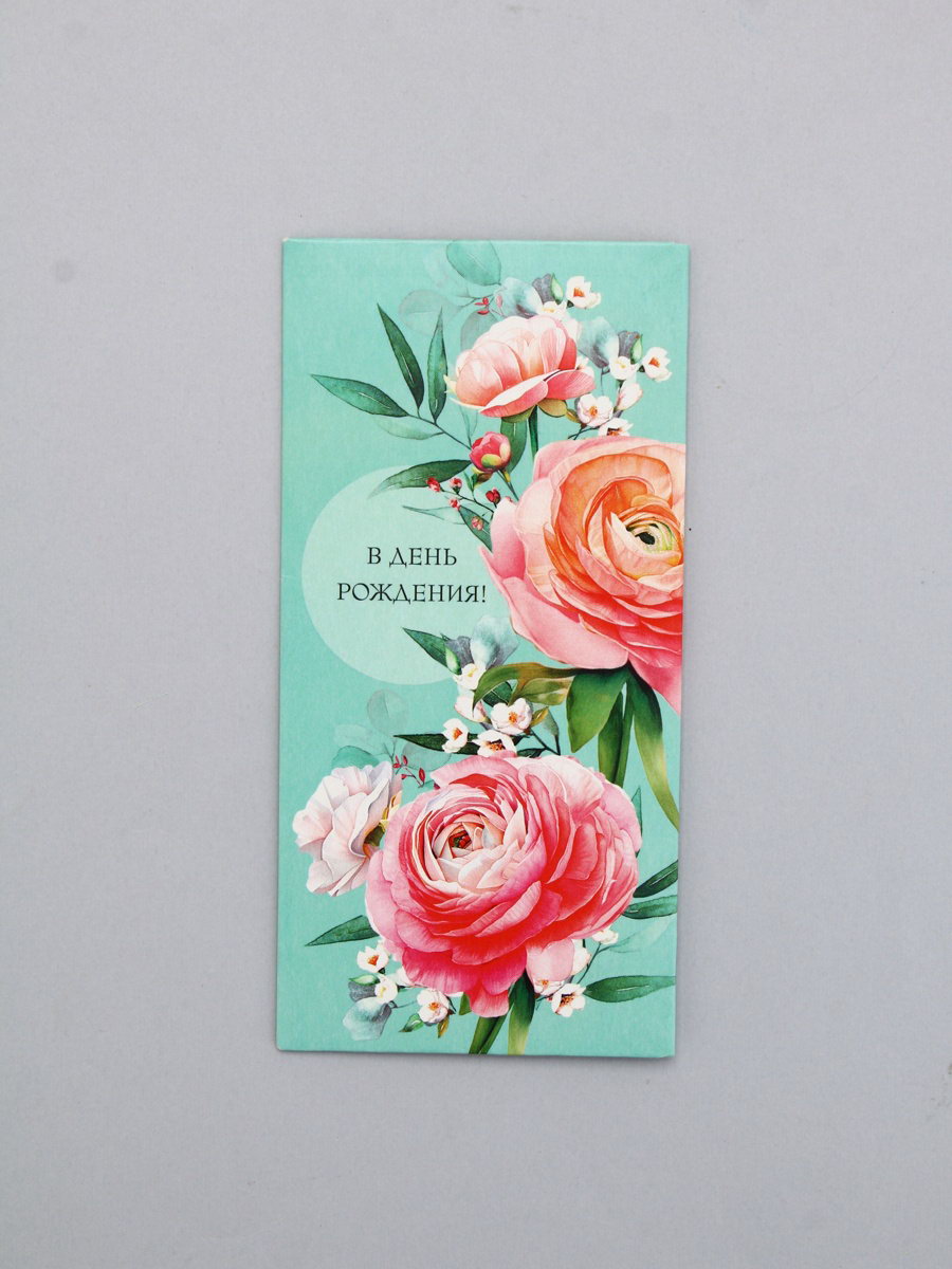 Конверт для денег "В День Рождения!", бирюзовый, 16.5 x 8 см, Россия