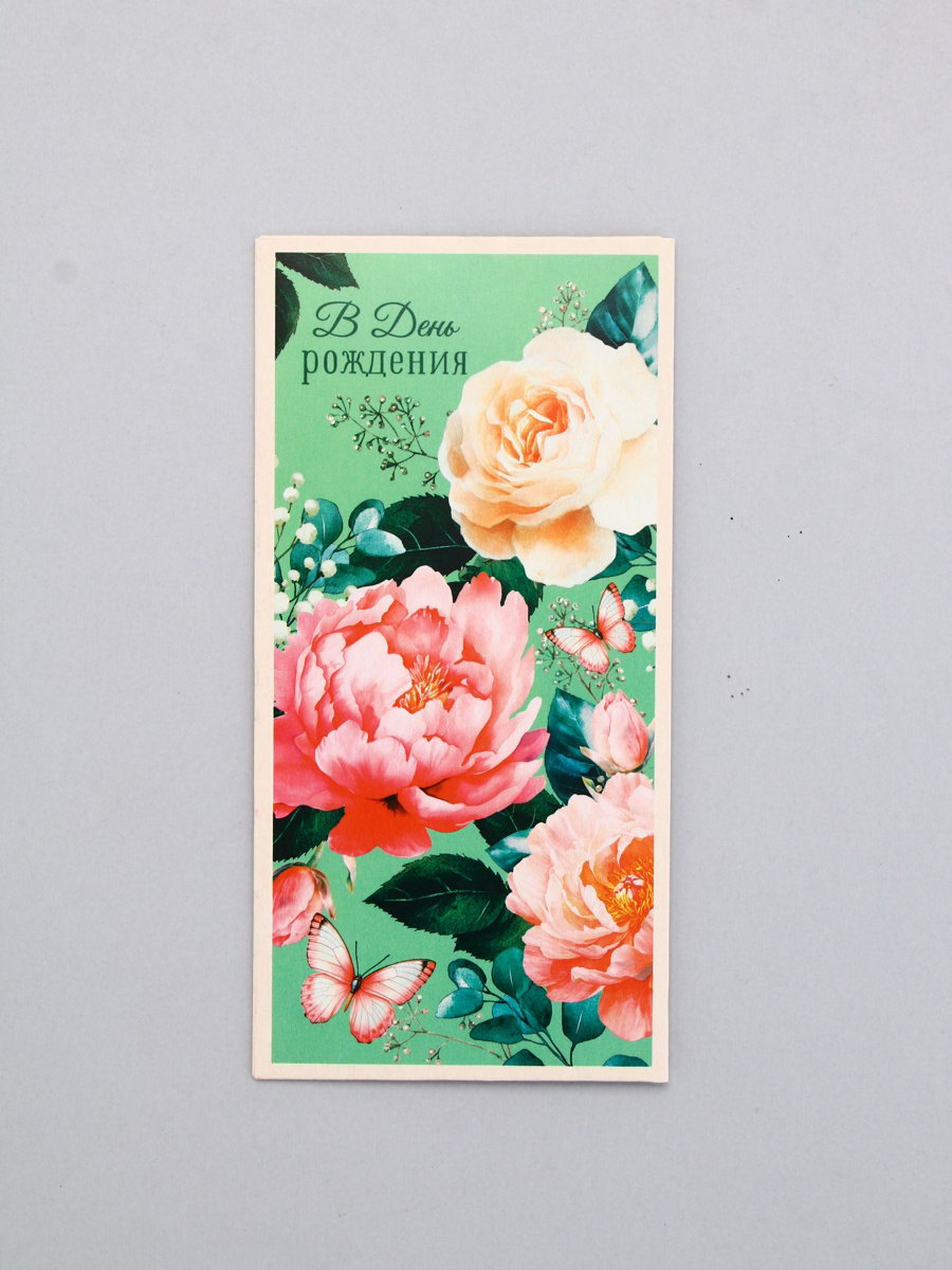 Конверт для денег "В День Рождения!", бабочки и зелёный, 16.5 x 8 см, Россия