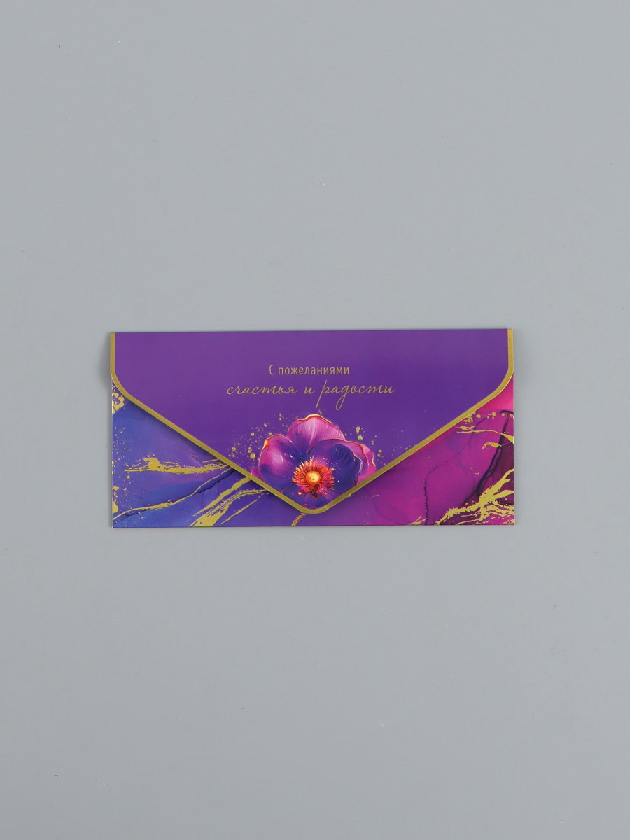 Конверт для денег "С пожеланиями счастья и радости", люкс, 16.5 x 8 см, Россия