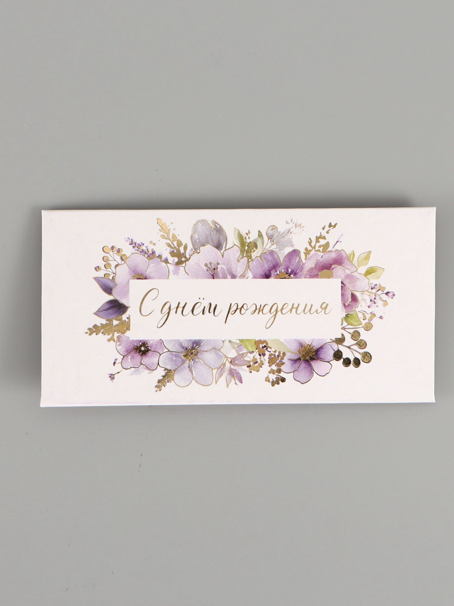 Конверт для денег "С днём рождения", цветы, тиснение, 16.5 x 8 см, Дарите Счастье, Россия
