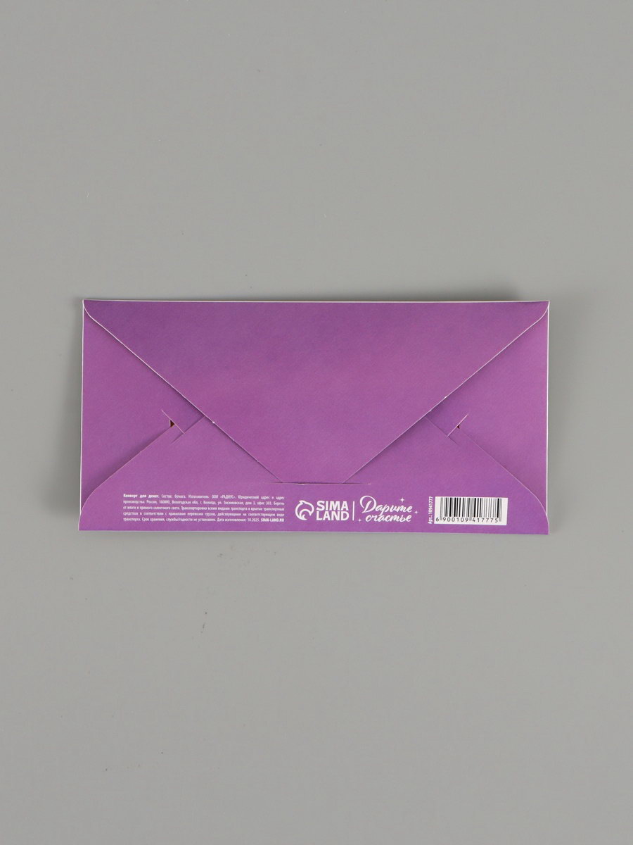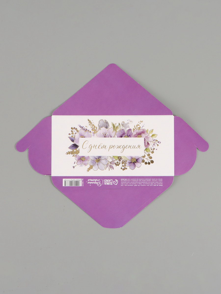Конверт для денег "С днём рождения", цветы, тиснение, 16.5x8 см, Дарите Счастье, Россия