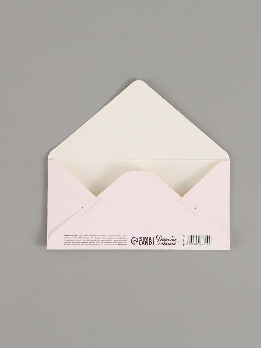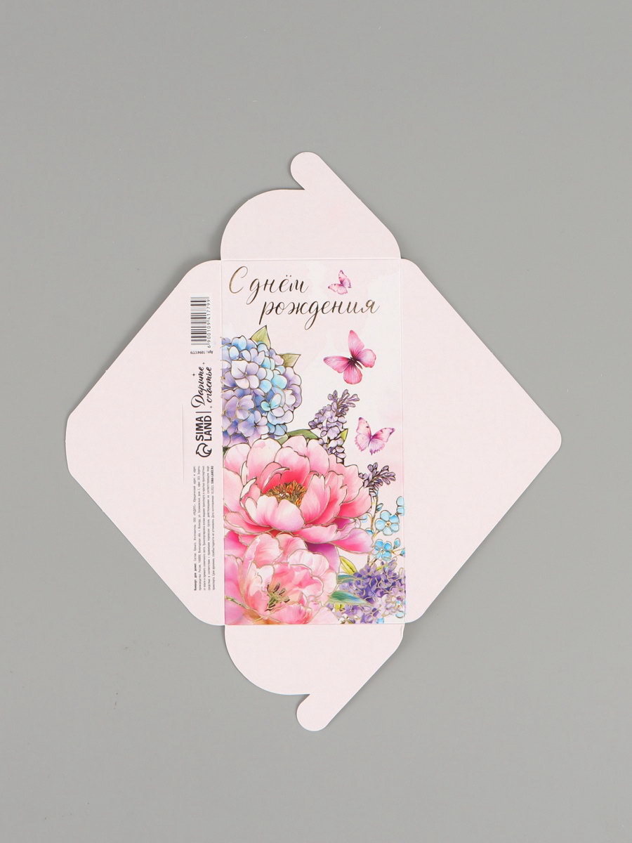 Конверт для денег "С днём рождения", тиснение 16.5x8 см, Дарите Счастье, Россия