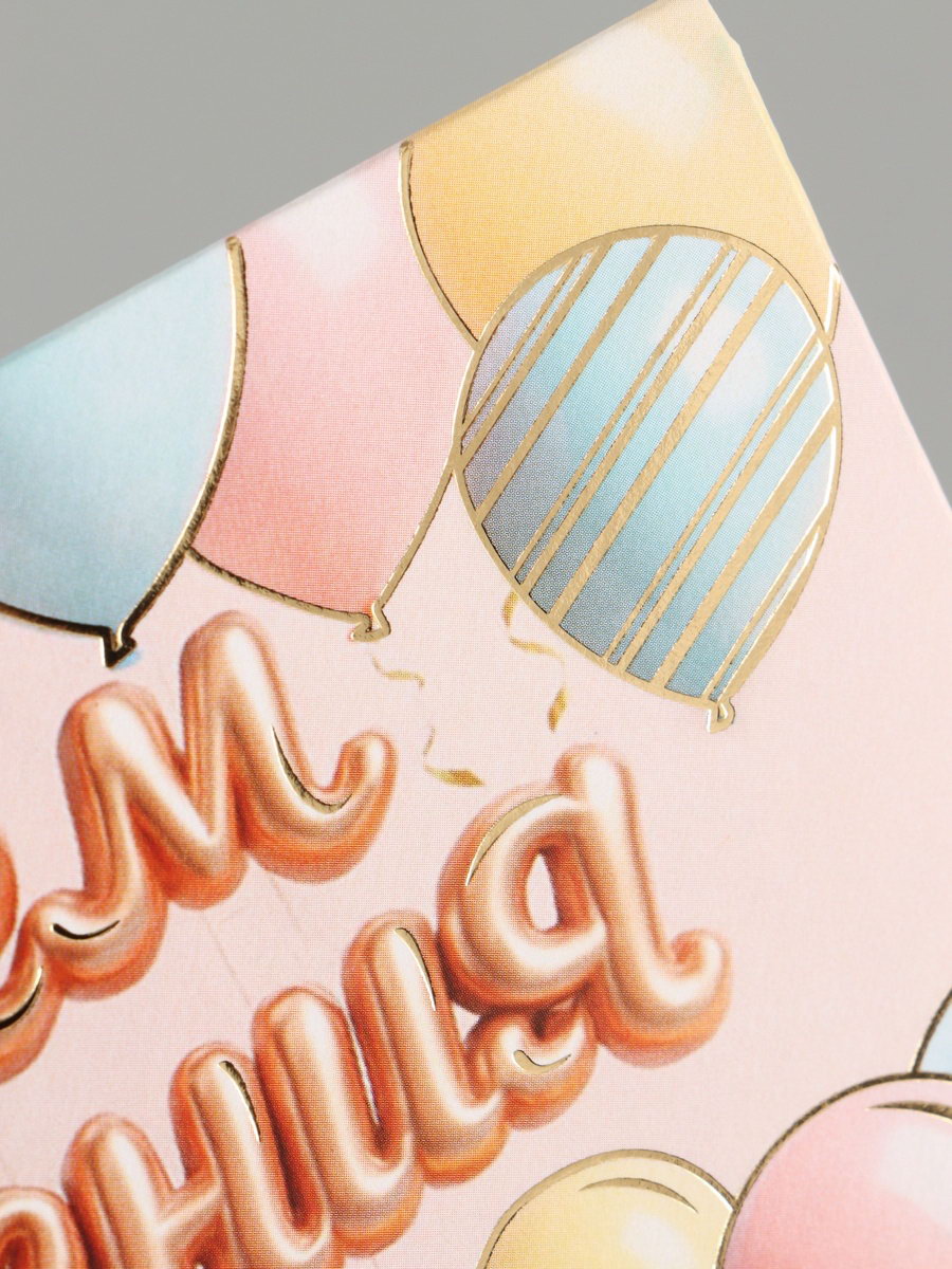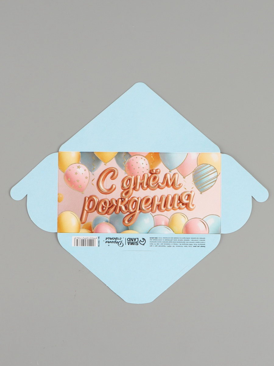 Конверт для денег "С днём рождения", шары, тиснение 16.5x8 см, Дарите Счастье, Россия
