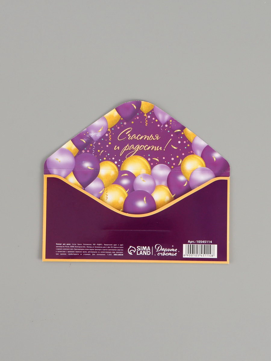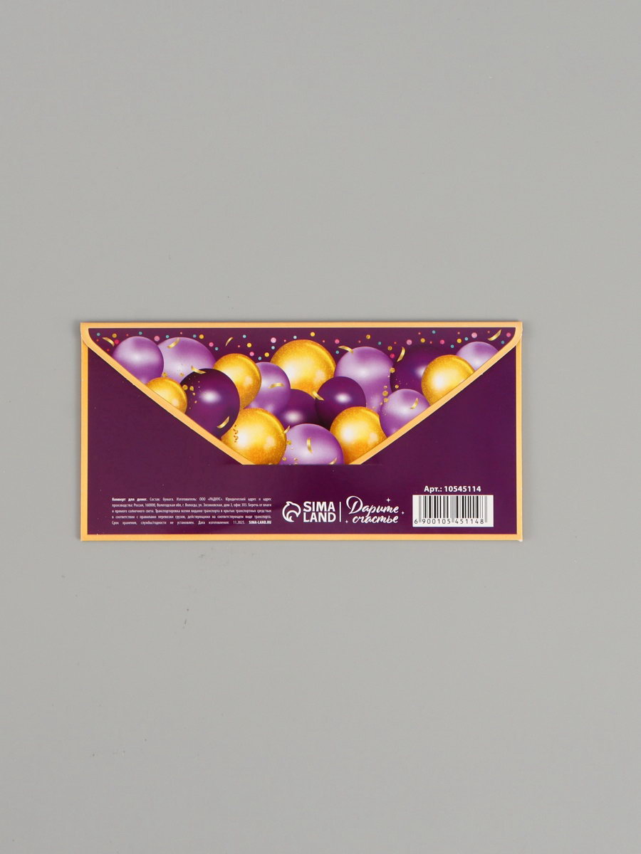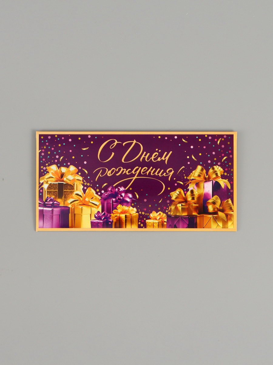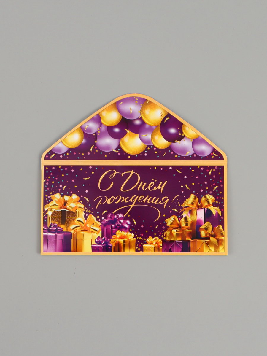 Конверт для денег "С днём рождения!", подарки и шарики, двусторонний, 16.5 x 8 см, Дарите Счастье, Россия