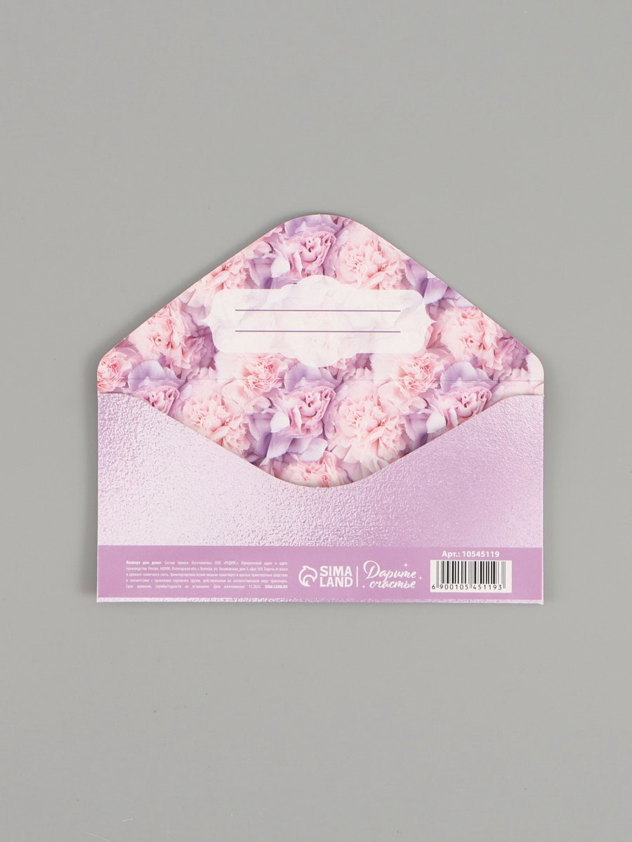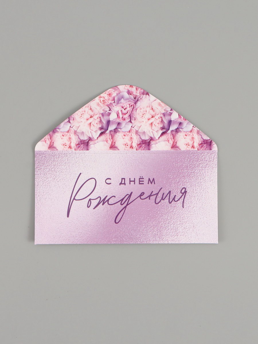 Конверт для денег "С днём рождения!", цветы, двусторонний, 16.5 x 8 см, Дарите Счастье, Россия