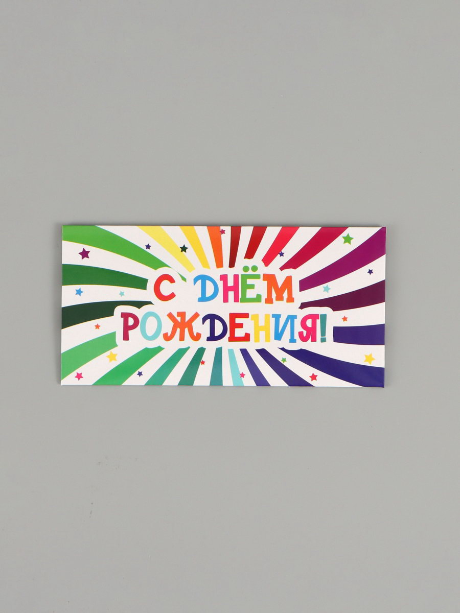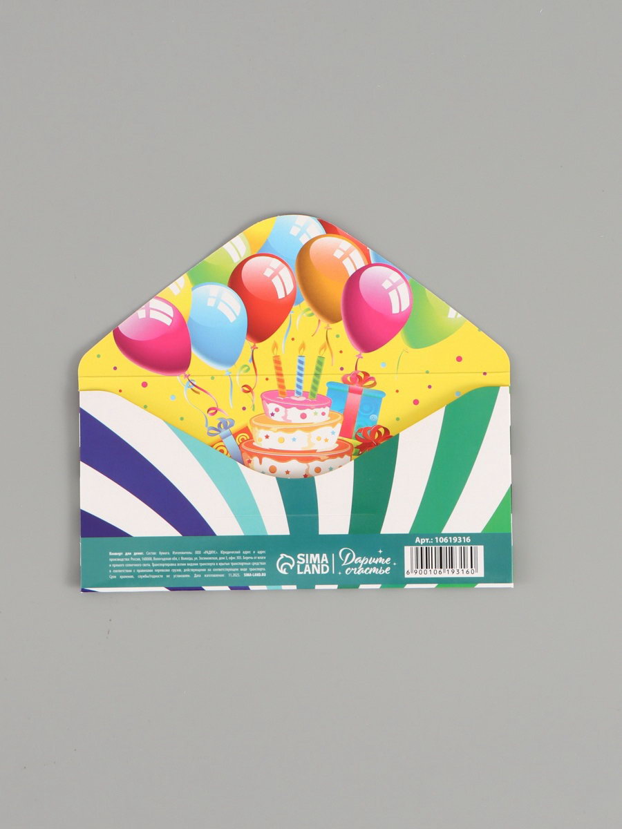 Конверт для денег "С днём рождения!", торт, двусторонний, 16.5 x 8 см, Дарите Счастье, Россия