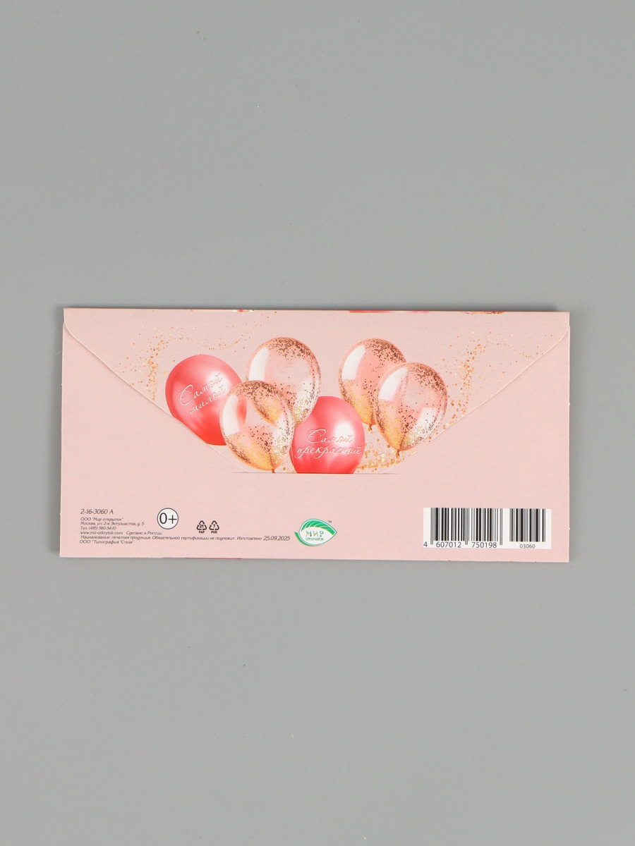 Конверт для денег "С днем рождения!", глиттер, 16.5 x 8 см, Мир открыток, Россия